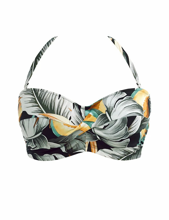 This botanical-inspired bandeau bikini top from Fantasie is the perfect touch of tropical. It features lightly padded cups for support, with a clasp fastening at the back and removable halterneck straps. A twist front style creates a flattering sweetheart neckline.
