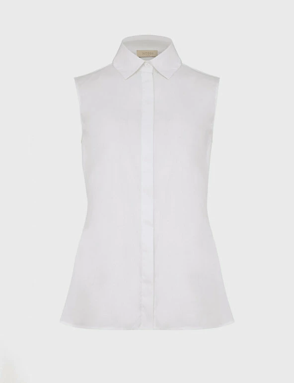 Upgrade your summer staples with this cotton-rich Hobbs shirt. The classic shirt has been redefined in this smart sleeveless silhouette. It is cut in a figure-flattering fitted shape, with added stretch for a flexible feel. The collared neck and concealed button closure give it a clean, unfussy finish.