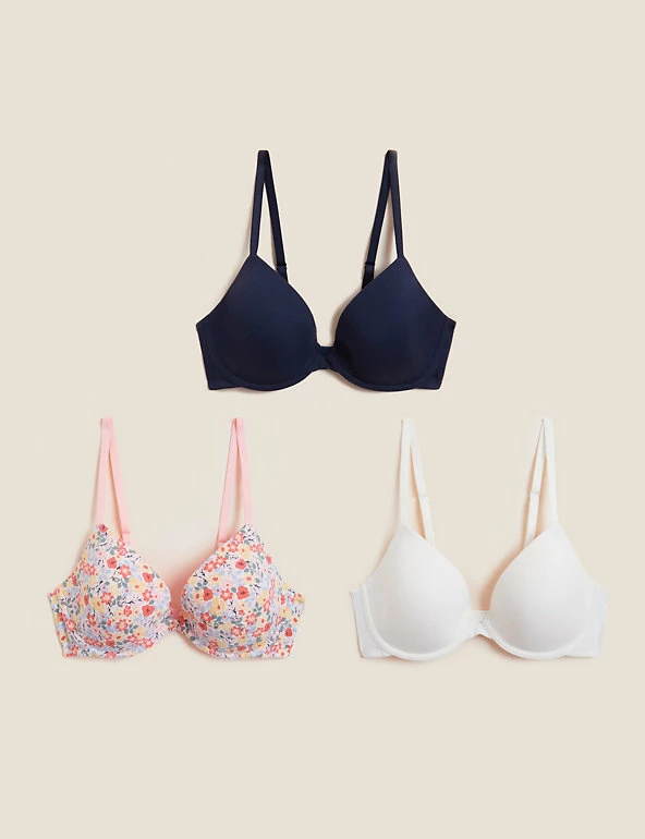 These cotton-rich bras are so versatile, we thought you’d want a pack of three. Their plunge t-shirt shape is ideal for everyday wear and comes with underwiring for exceptional support. We only ever use responsibly sourced cotton for our clothes.