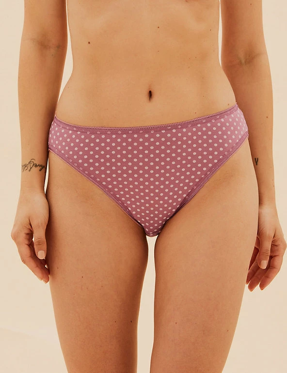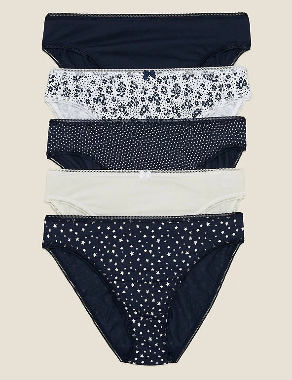 Update your Monday to Friday lingerie essentials with this five-pack of high-rise cotton-rich briefs. Made with smooth Lycra® to give you a comfy flexible fit. Choose between three ditsy print patterns and two plain versions. We only ever use responsibly sourced cotton for our clothes. M&S Collection: versatile styles in modern shapes with unique and playful details.