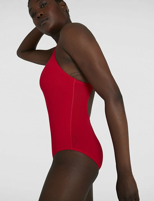 Glide into the pool in this figure-flattering swimsuit by Speedo. The elegant piece features a scoop neck and the classic ‘medalist’ design. A medium neck, back and leg cut improves comfort and flexibility during training sessions. Thanks to chlorine-resistant fabric, it’ll keep its colour and finish for longer. Made with recycled polyester.
