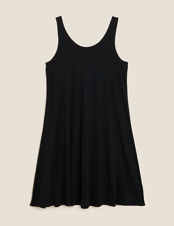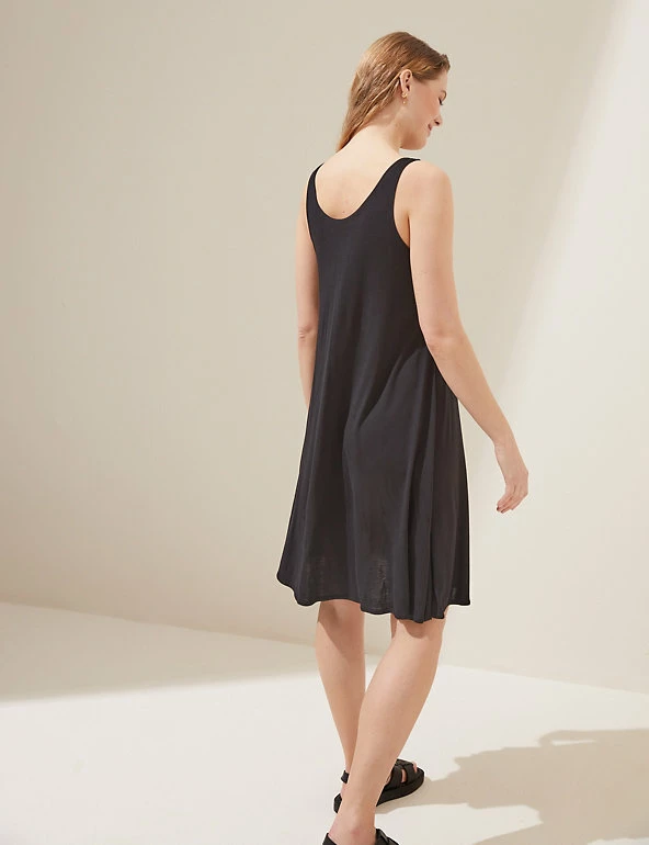 With its swing silhouette and drapey jersey fabric, this sleeveless mini dress has an easy-breezy feel. Made in a regular fit, it features a flattering scoop neckline and a flowing skirt.