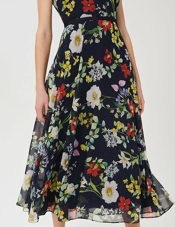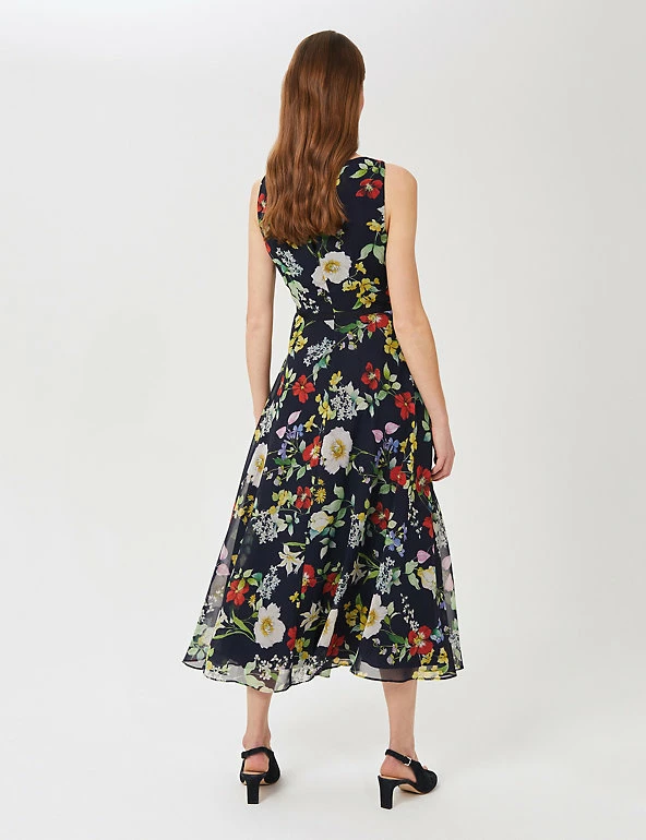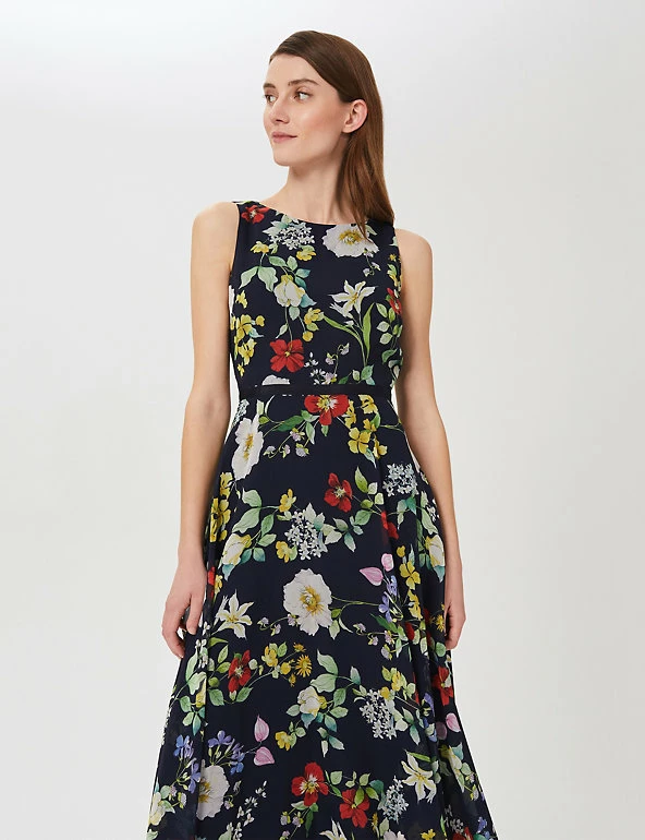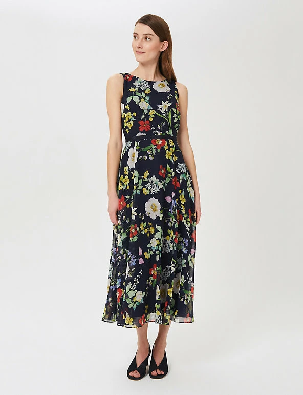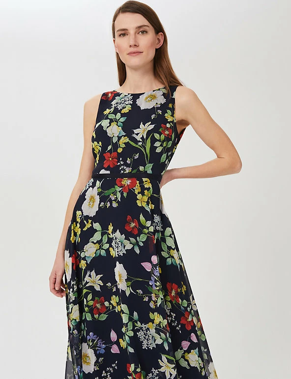 With its gorgeous floral print that was designed in-house, this sleeveless dress from Hobbs will make an impact at any occasion. It’s cut to a comfortable regular fit in an on-trend midi length, from georgette fabric that drapes beautifully. A textured ribbon cinches the waist, while the skirt swings as you walk. It fastens with a zip at the back.