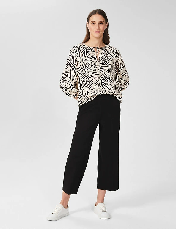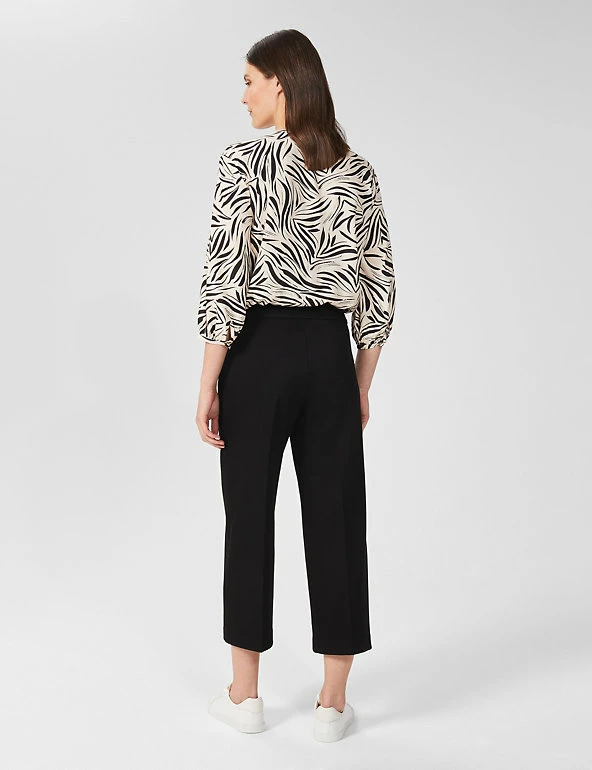 Bring sleek modernity to your wardrobe with these twill trousers from Hobbs. They’re made in a regular fit, with a mid-rise waist for comfort. Their cropped, wide-leg silhouette helps elongate your frame and define your waist. They fasten with a hook bar and zip and are lined for a cosy feel. Made with sustainably sourced viscose.