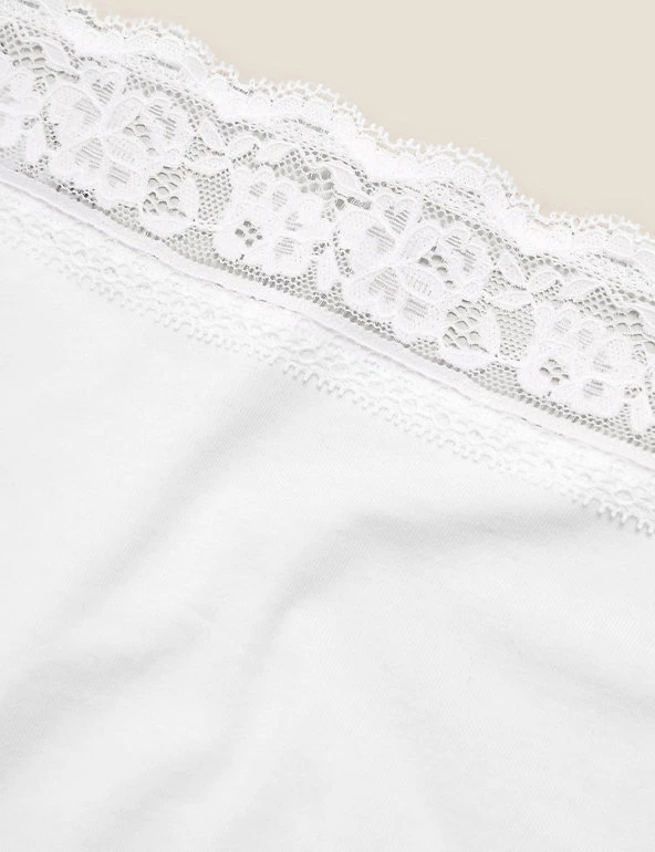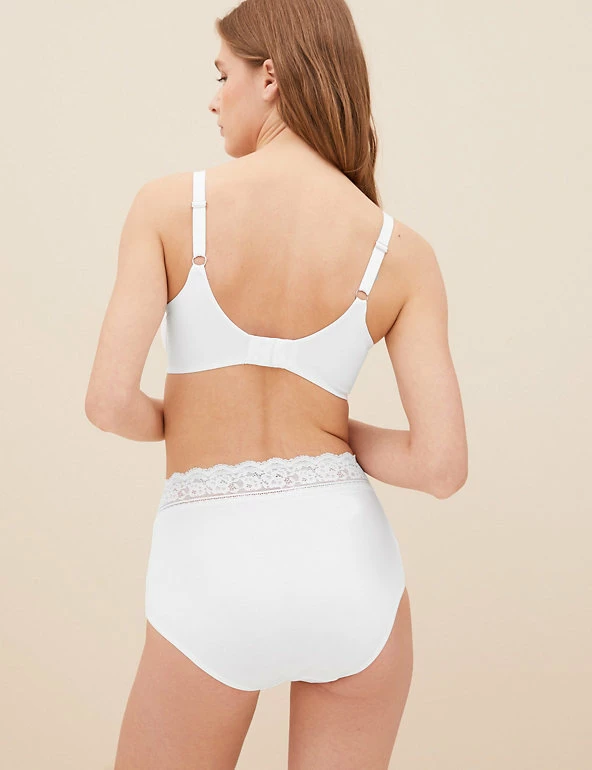 These practical-yet-pretty knickers are a weekday staple. Full coverage briefs with a super-soft lace trim around the waistband. With added stretch for comfort. We only ever use responsibly sourced cotton for our clothes.