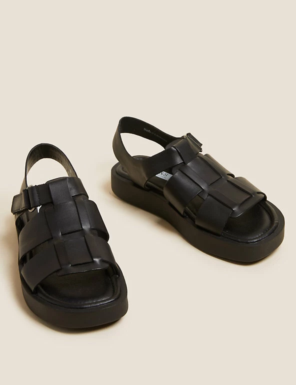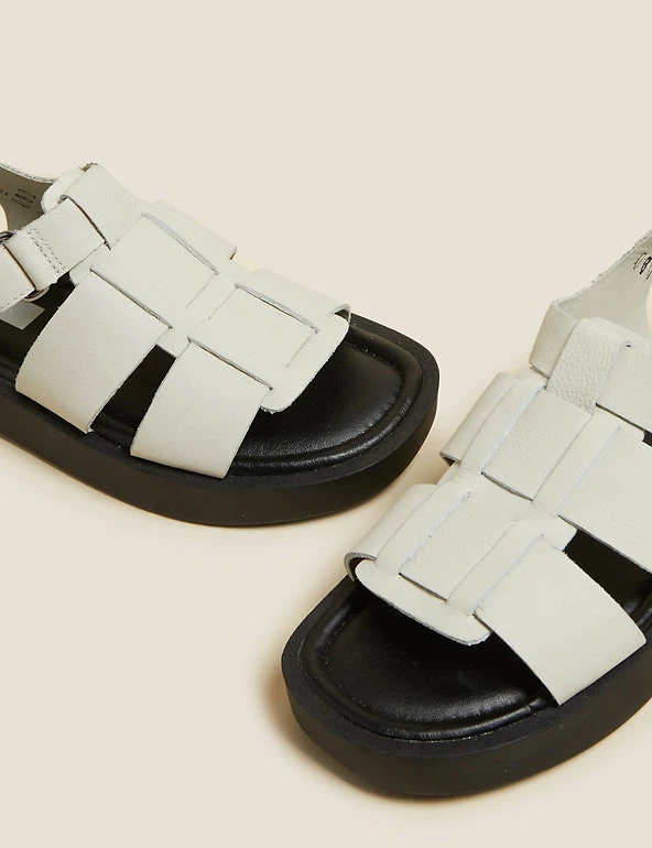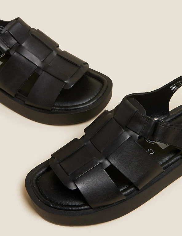 Help your feet beat the heat with these leather strappy sandals. Secured with a buckle fastening and complete with an antibacterial padding to keep them fresh. Made with sustainably sourced leather.