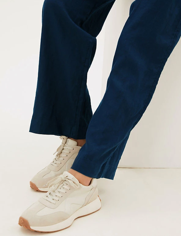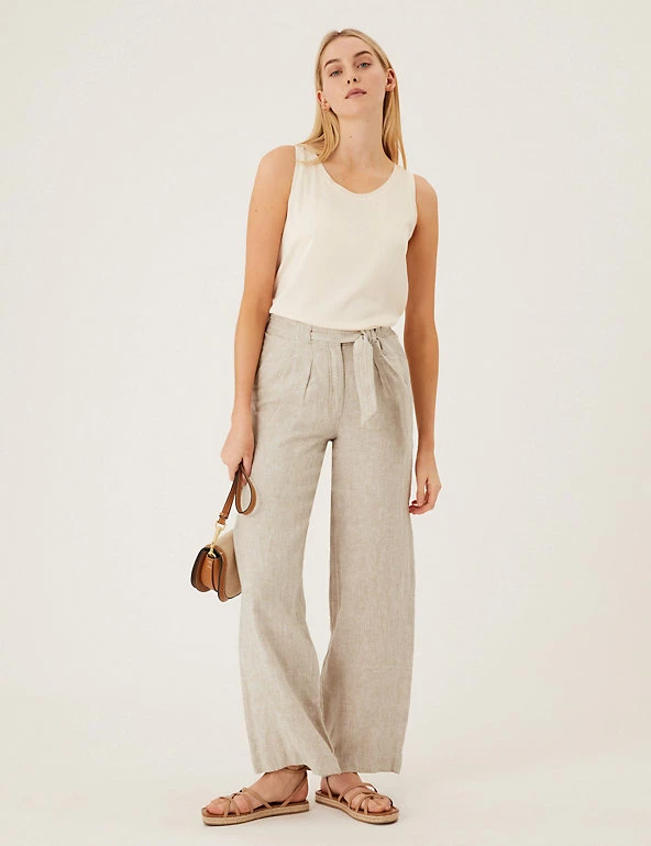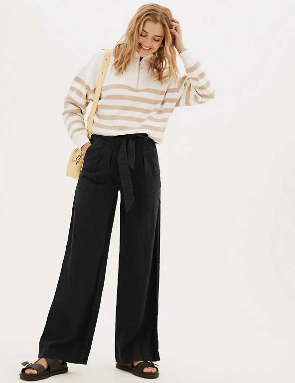 Glide through the day in ultimate comfort with these breathable pure linen trousers. They’re cut to a regular fit and designed in a modern wide leg shape. Mid-rise waist with a detachable belt for a flattering finish.