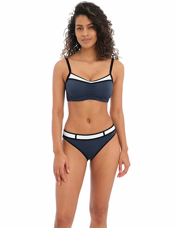With their colour block design and mock belt detail, these Freya bikini bottoms introduce a Bond girl-inspired look to your swimwear collection. The briefs sit comfortably on the hips, with a flattering cut on the leg, and offer good bottom coverage. They’re crafted with Lycra® Xtra Life™ to fit and shape without sagging.