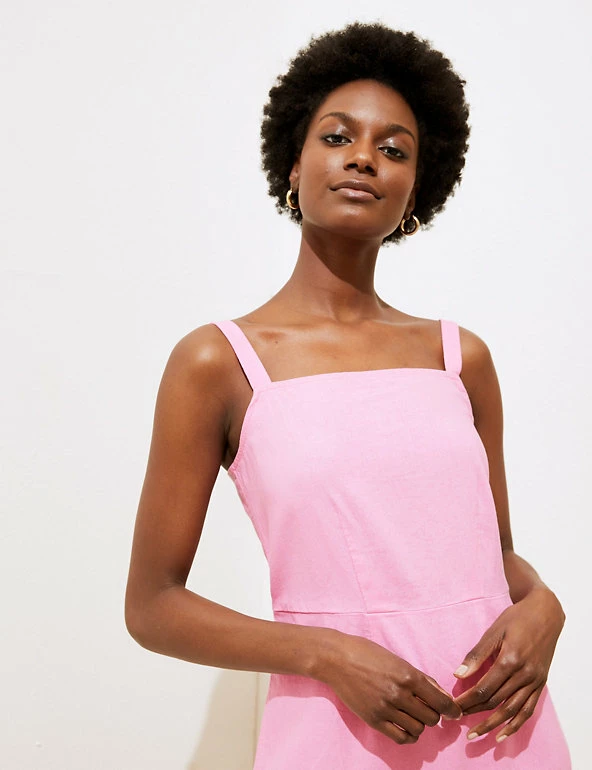 When sunny days call, this linen-blend slip dress answers. This strapless design comes in a regular fit with a mini length for breathability in warm weather. A square neck and tailored waist offer an elegant finish. Made with sustainably sourced viscose.