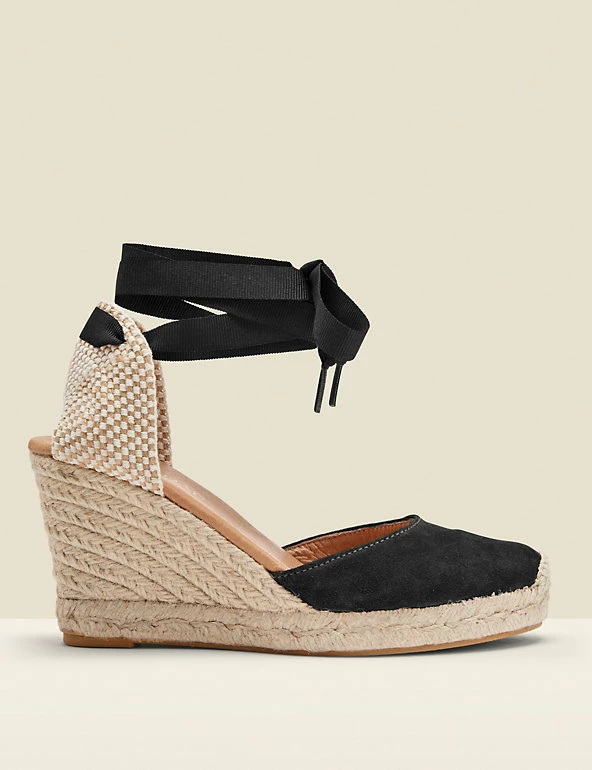 Go for feminine style with these heeled espadrilles from Sosandar. They have a wedge heel for comfort and a lace ankle tie fastening for an elegant look. The toe is made from butter-soft leather for a luxurious finish.
