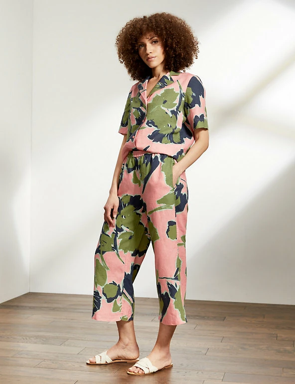 Brighten up your nightwear collection with these pure linen pyjama bottoms from Jaeger. Crafted from premium European linen, they’re designed in a regular fit and are perfectly breathable and lightweight for the warmer months. They’re cut with a flattering straight leg and have an elasticated waist for comfort in the night. The bold and colourful leaf print is unique to Jaeger.