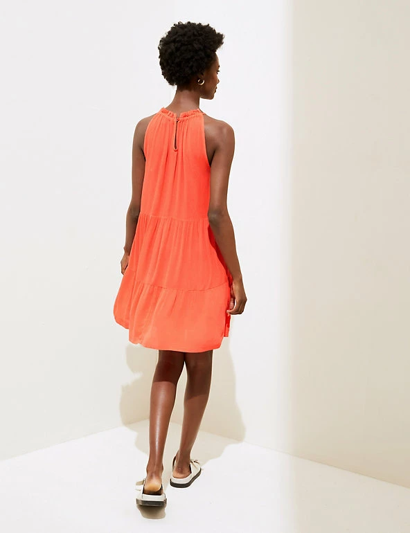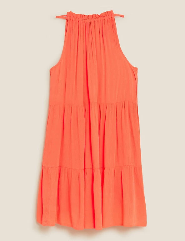 With flattering tiers and a floaty swing shape, this beach dress offers effortless summer style. Regular-fit, sleeveless design. High neckline and playful mini length.
