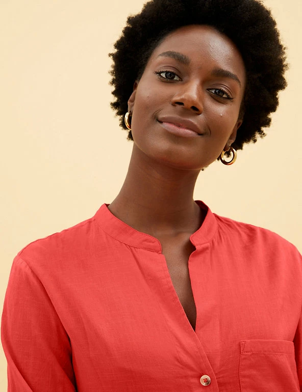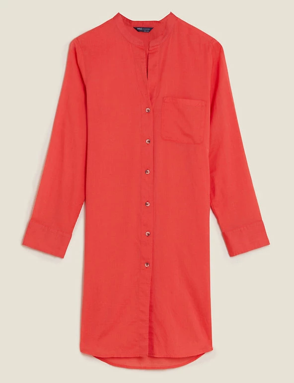 Covering up is a breeze with this stylish pure cotton beach shirt. Regular fit, made in a flattering longline cut. Dropped sleeves and a collarless neck give a casual look. M&S Collection: easy-to-wear wardrobe staples that combine classic and contemporary styles.