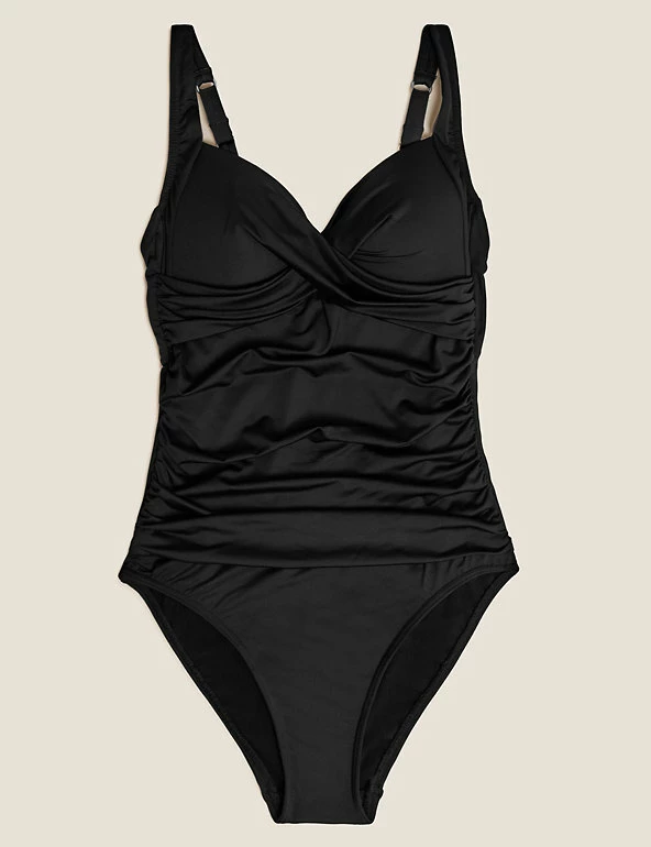 This swimsuit features smoothing Magic 360° Tummy Control technology for a streamlined look, ensuring you look your best from every angle. Secret Slimming™ power mesh front and back to help sculpt your shape. Plunge design with figure-framing look ruching. Made from StayNew™ chlorine-resistant fabric that’ll stay stronger and keep its stretch for longer.