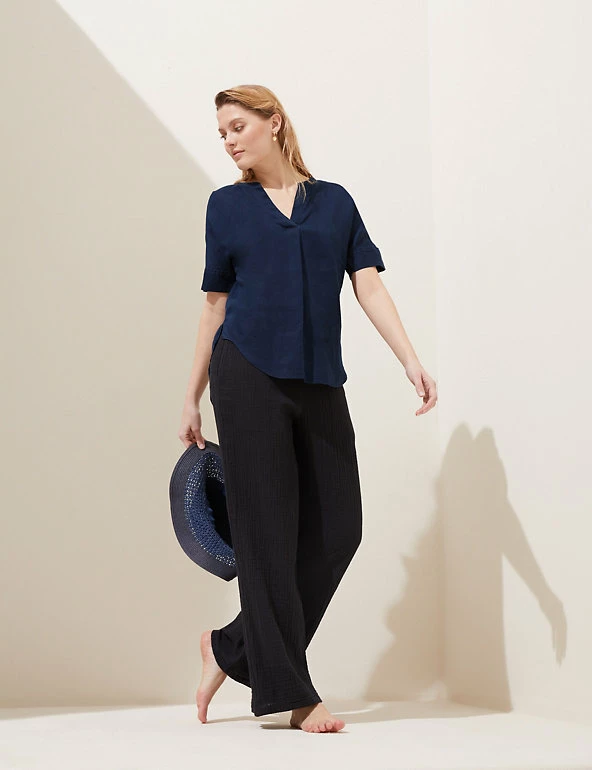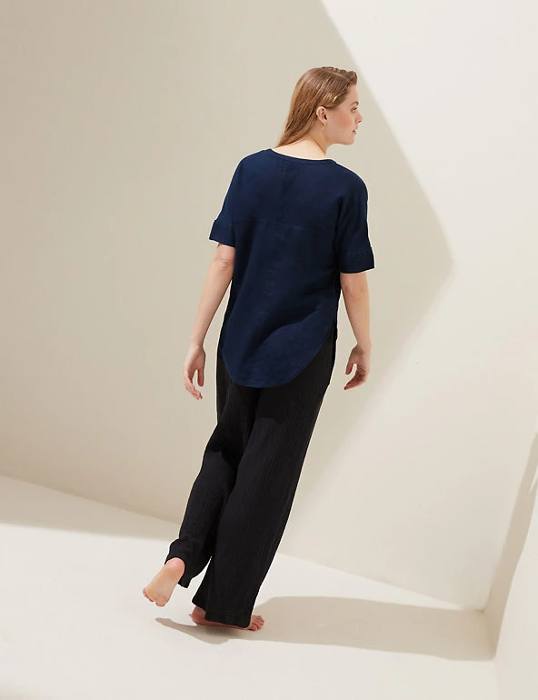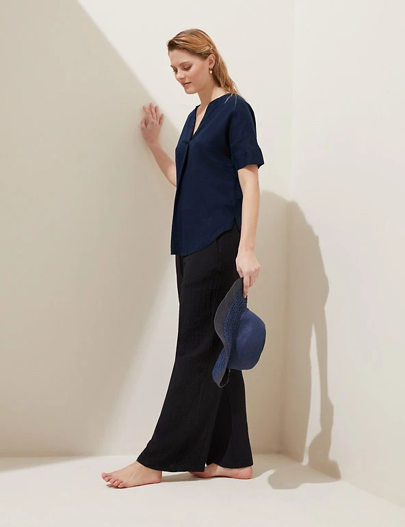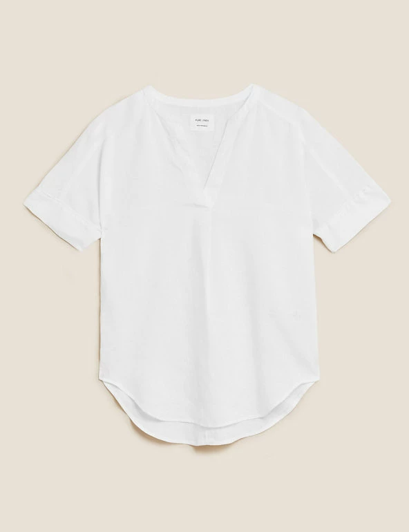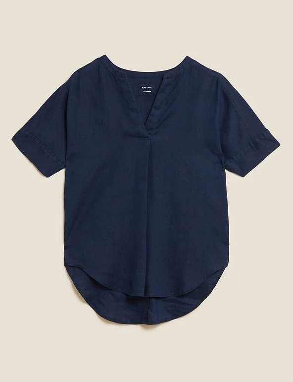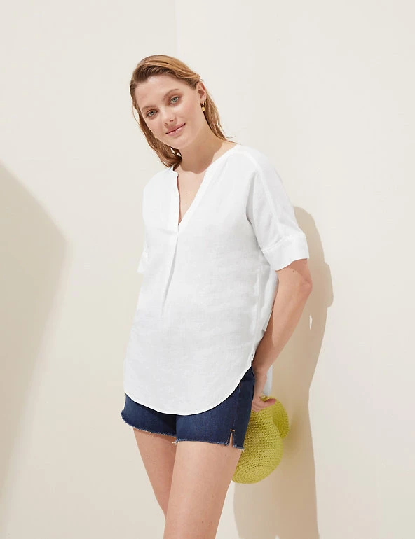 Lightweight linen gives this popover blouse an effortless feel. It’s cut in a regular fit with a classic v-neck. Short sleeves and a curved hem accentuate the breezy effect.