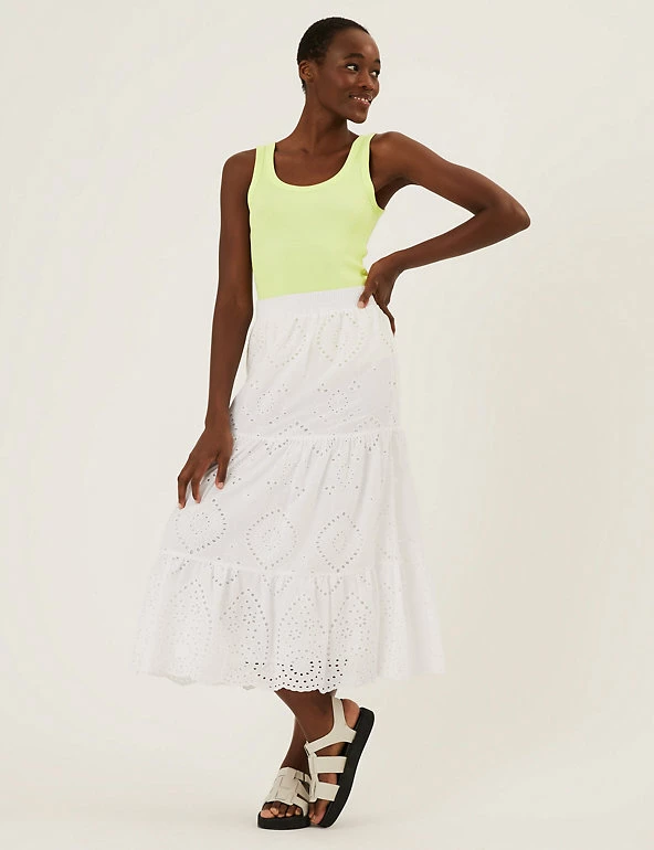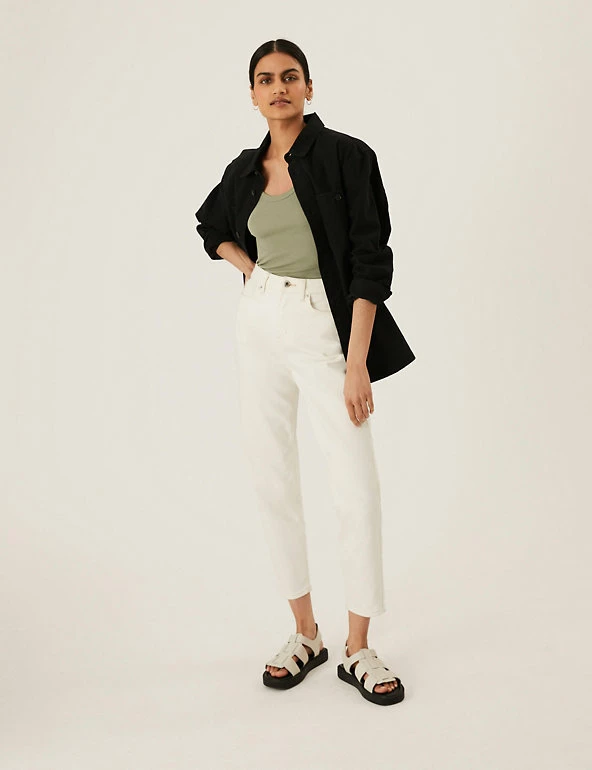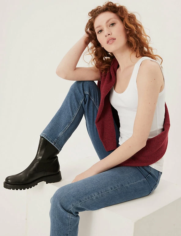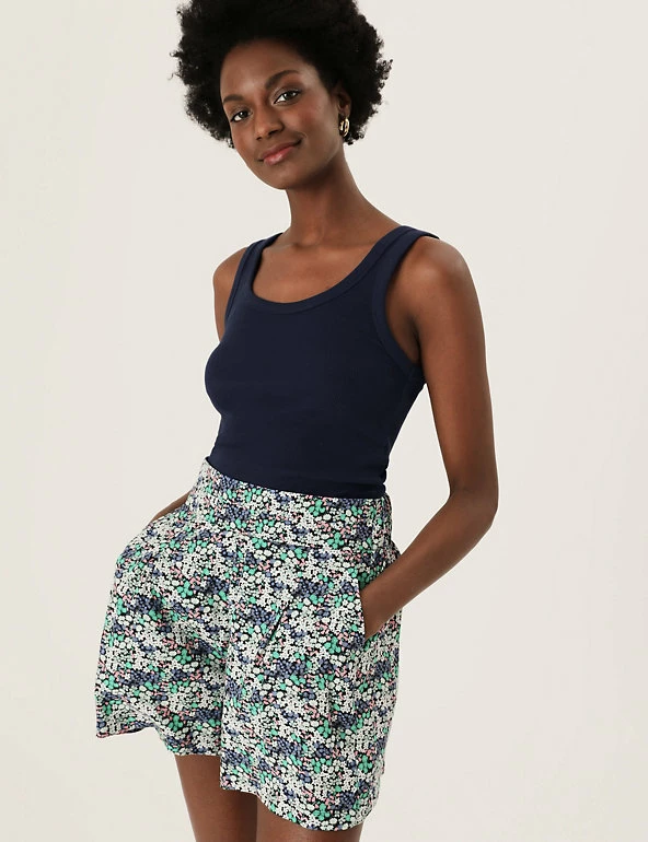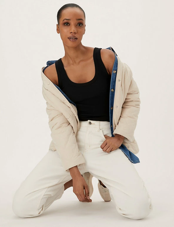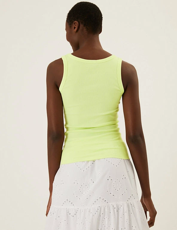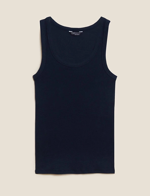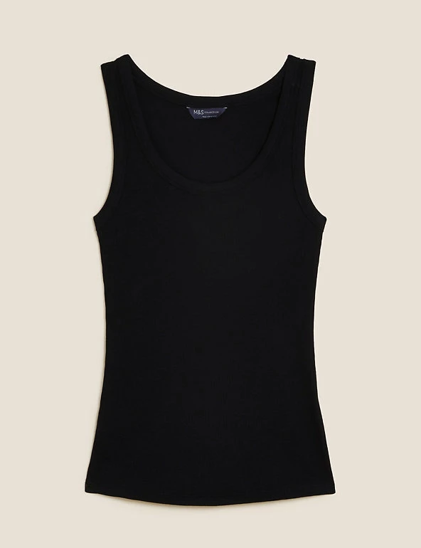 Cotton-rich fabric ensures this ribbed vest top feels wonderfully breathable. Fitted style, with added stretch for comfort and a flattering scoop neck. We only ever use responsibly sourced cotton for our clothes.
