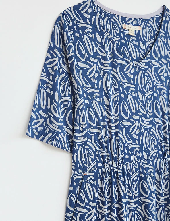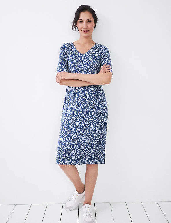 An exclusively designed brush stroke print gives this White Stuff dress a creative energy. Made in a comfy regular fit, it has an effortless shift silhouette that falls to a midi length, and features handy pockets. Shallow side splits make movement easier and a touch of stretch ensures extra comfort. Made with sustainably sourced viscose.
