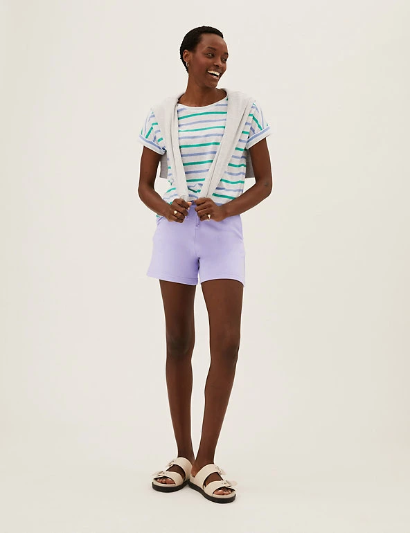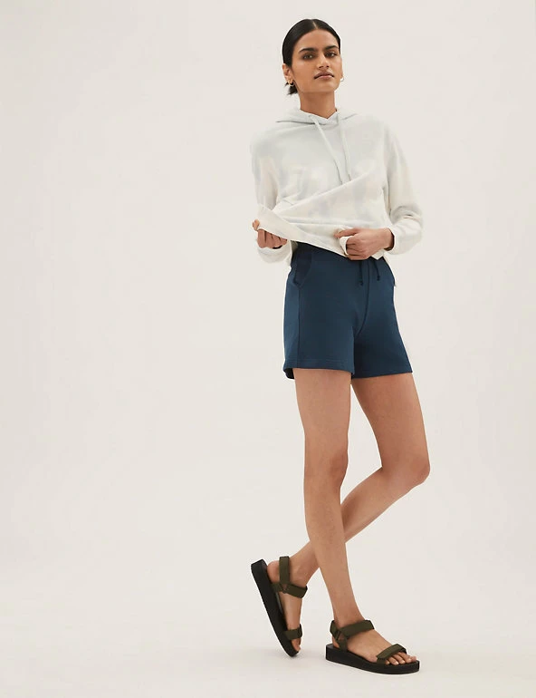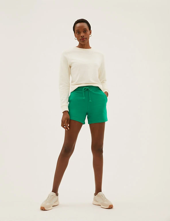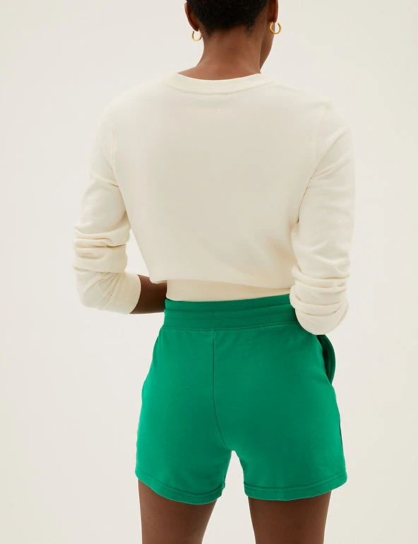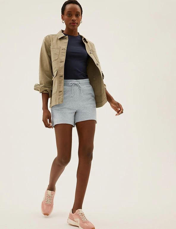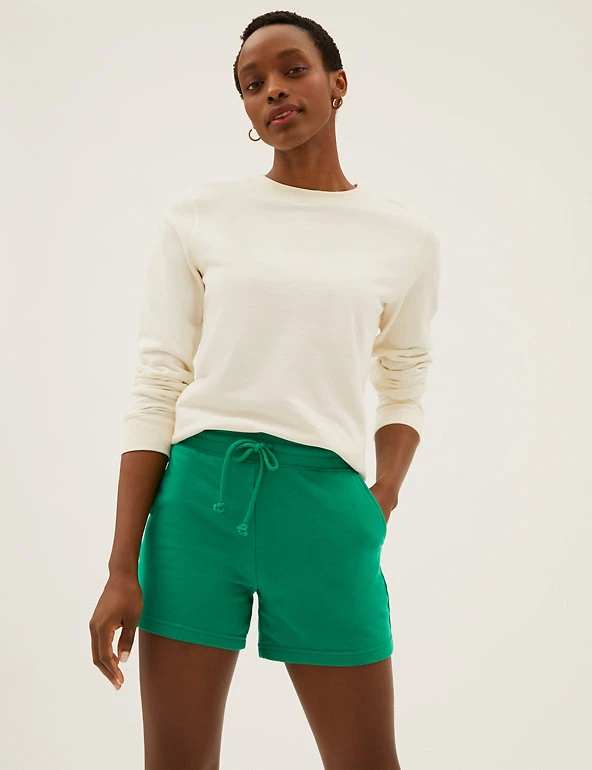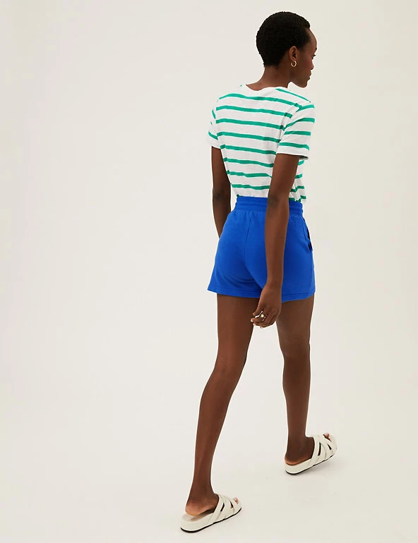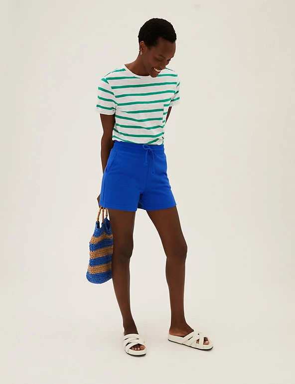 Super-soft cotton-rich jersey gives these casual shorts an irresistibly comfy feel. Secure them with the drawstring at the ribbed high waist for the perfect fit, and slip your essentials into the pockets on either side.We only ever use responsibly sourced cotton for our clothes.