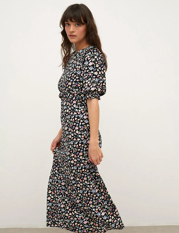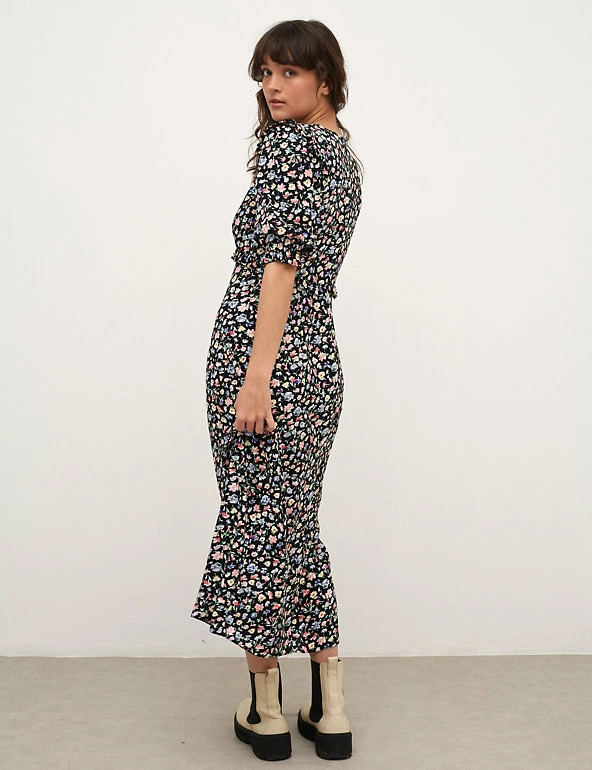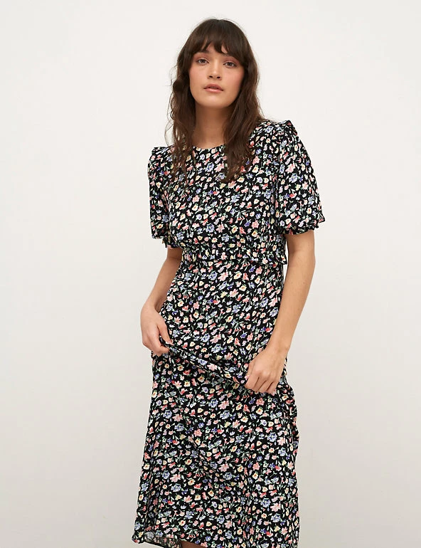 This Nobody’s Child floral tea dress will suit any occasion from weekday to weekend. It’s cut to a regular fit, with a simple round neckline and short, gently puffed sleeves. The pretty floral print, together with frill detail on the shoulders and waistline, makes this number stand out. It sits at a sophisticated midaxi length and fastens with a zip at the back. Made with sustainably sourced viscose. Nobody’s Child designs are cut to a form-fitting shape, so if you’re looking for a more relaxed fit, we recommend choosing the next size up.