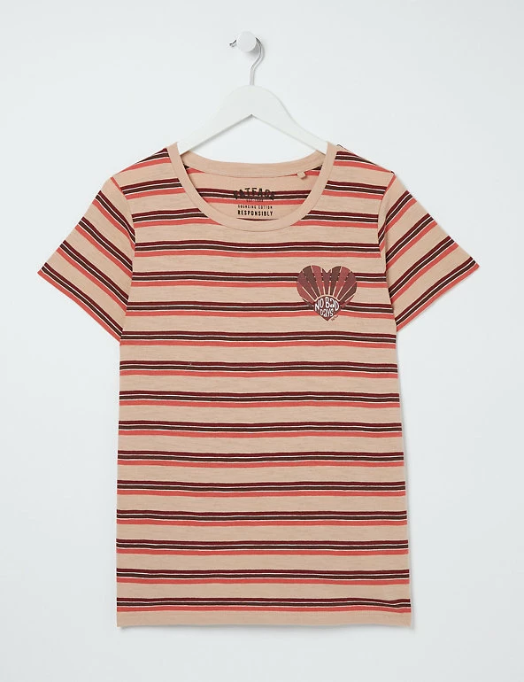 With its heart motif and ‘No bad days’ slogan, this pure cotton t-shirt from FatFace makes a cheerful addition to your off-duty wardrobe. It’s cut to a regular fit, with a classic round neck and short sleeves. A striped pattern adds a fun finish.