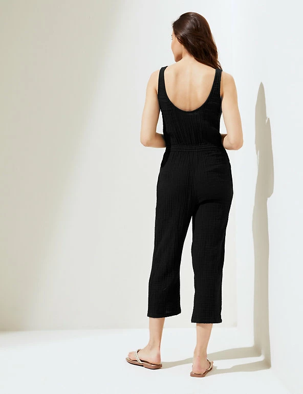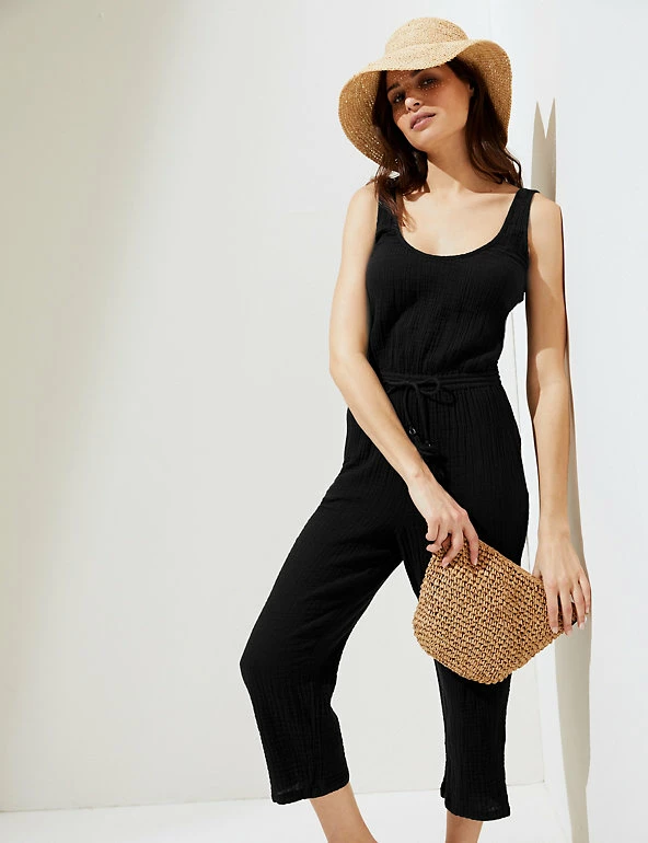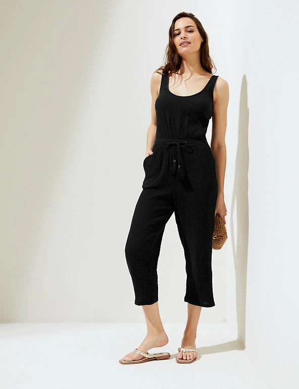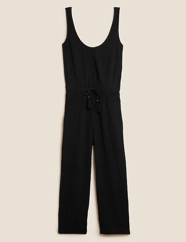Bring a boho vibe to balmy days with this pure cotton jumpsuit. Easy regular fit design with a scoop neckline. Sleeveless to keep you cool. Drawstring waist, featuring tasseled detail, to define your silhouette. M&S Collection: easy-to-wear wardrobe staples that combine classic and contemporary styles.