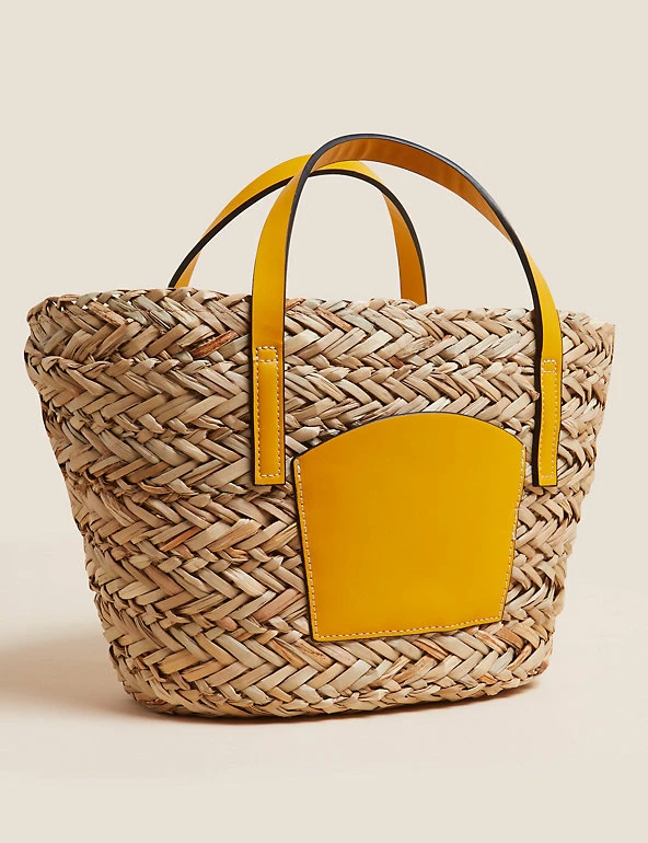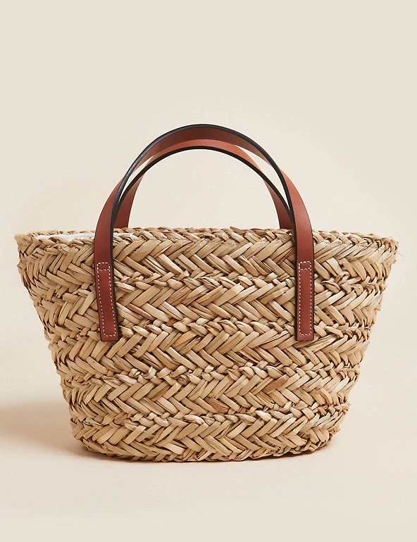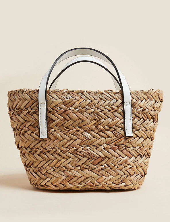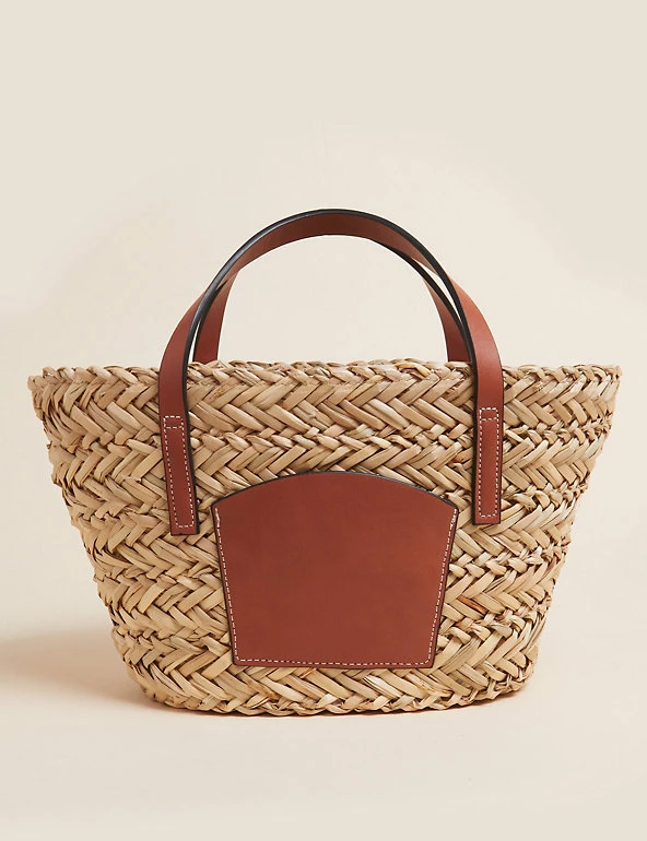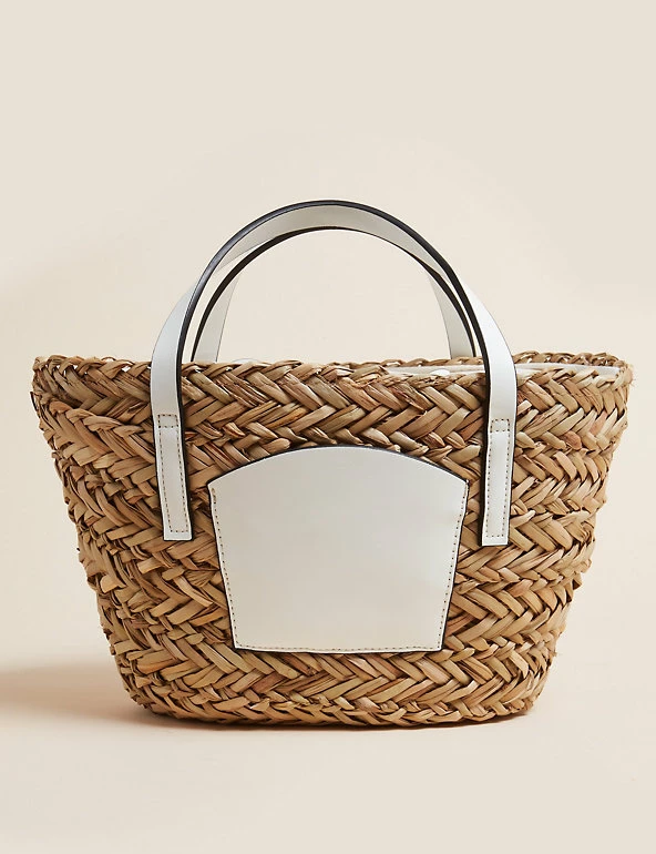 This mini tote bag is handmade from straw for a rustic-inspired look. Inside, a cotton drawstring pouch and zip pocket keep your belongings organised. Contrast faux leather handles make it comfortable to carry.