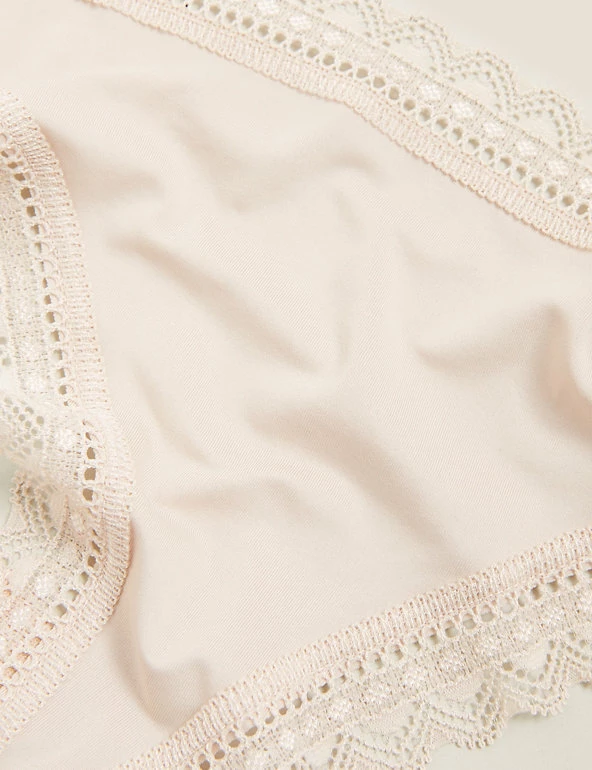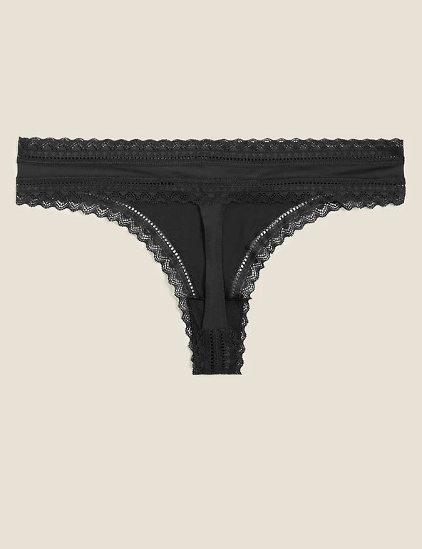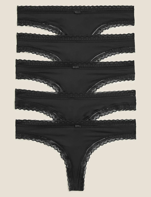 Add a delicate touch to your everyday lingerie with this pack of lacy thongs. Added stretch for extra comfort. Made from lightweight and soft microfibre fabric.