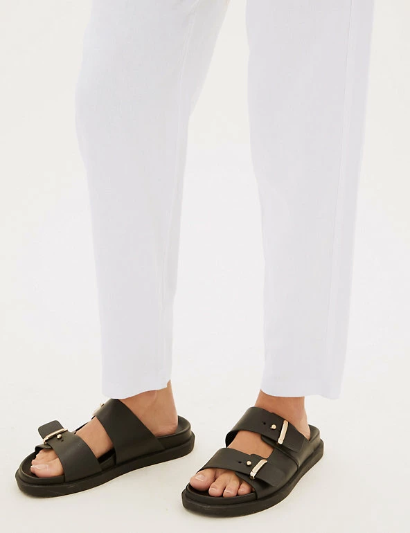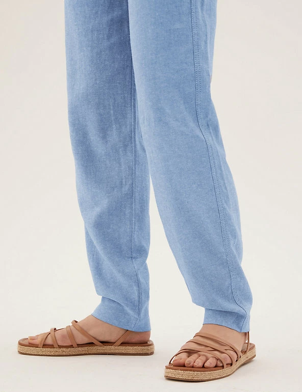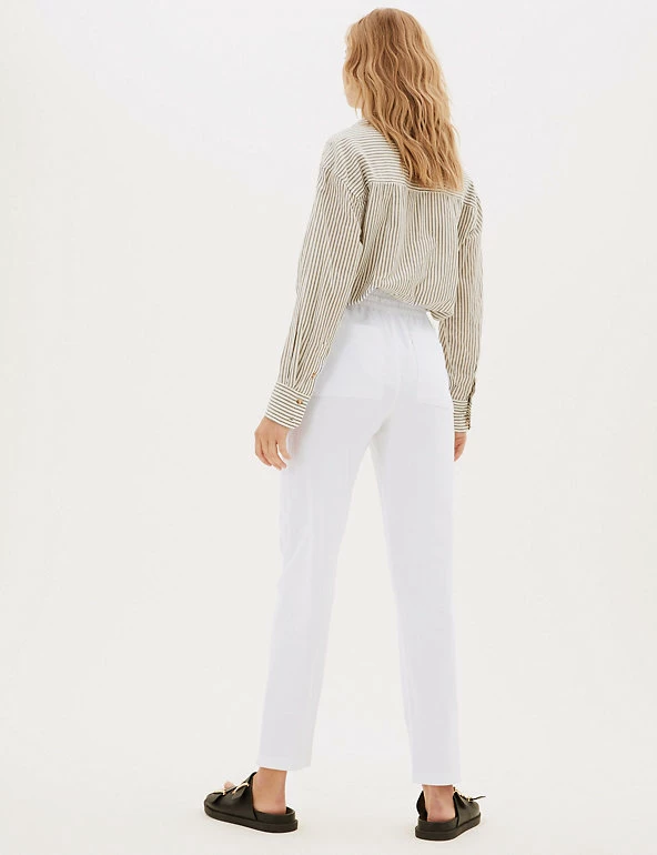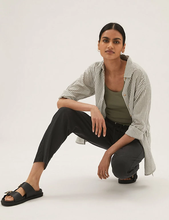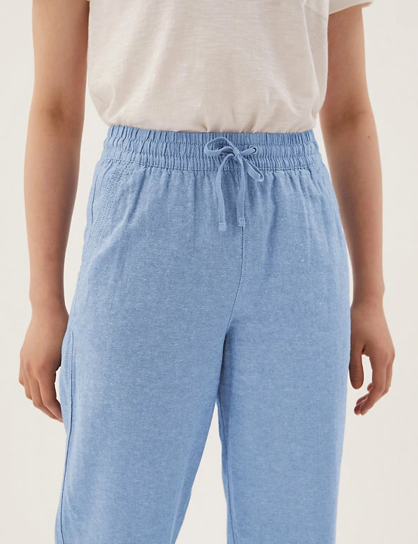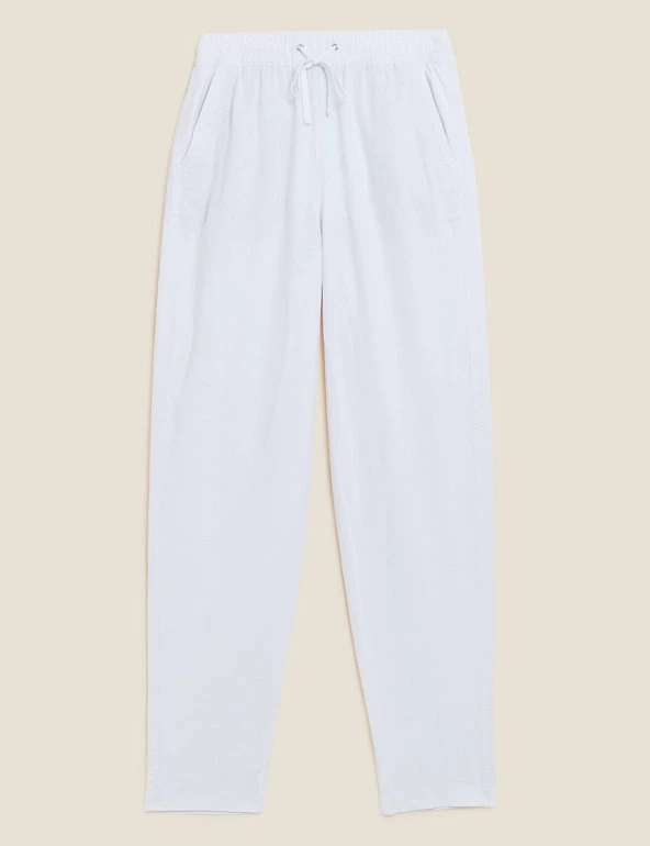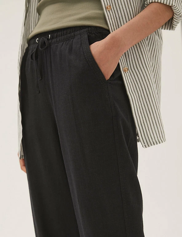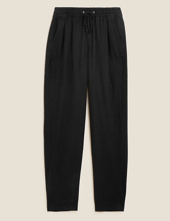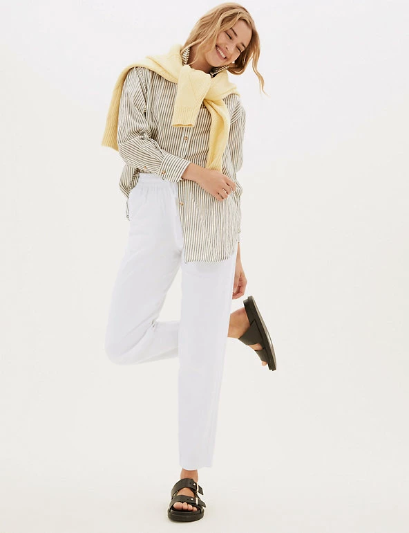 In a pull-on style, these linen-rich trousers will take you from desk to dinner. They’re cut to a tapered fit and sit comfortably at mid-rise with a drawstring, elasticated waist. The ankle-grazer length and gentle gathering at the top add to the smart-casual feel.