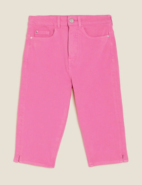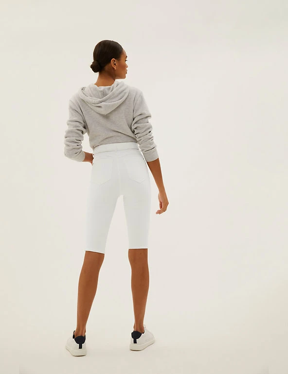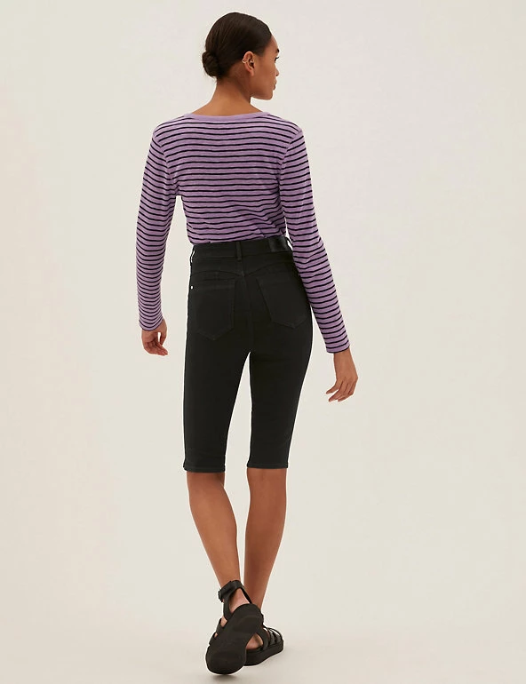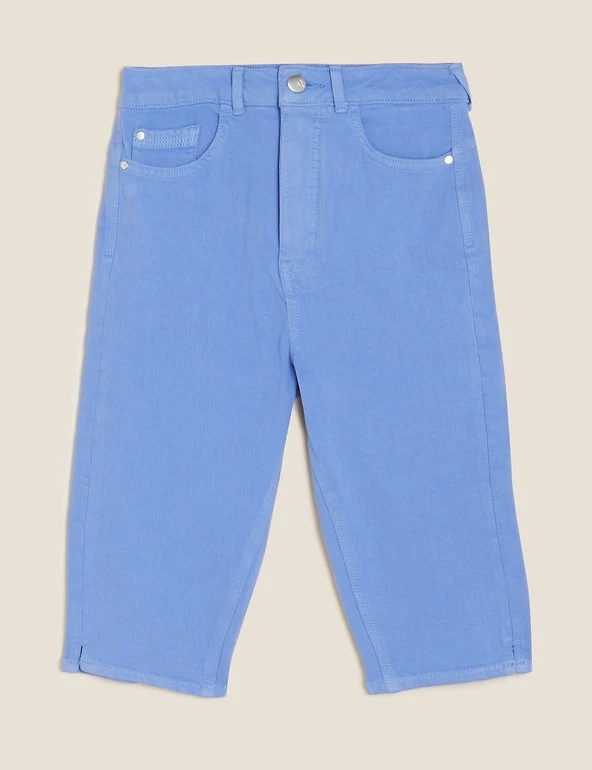 We’ve added our clever shaping technology to these cotton-rich knee-length shorts for a truly figure-flattering look. They’re made from premium bi-stretch denim for comfort and support. A contoured waistband means they won’t gape. Strategically placed darts help to lift your silhouette, while hidden front pockets create a smooth effect. Made with organic cotton. All M&S denim is made with sustainably sourced cotton and less water.
