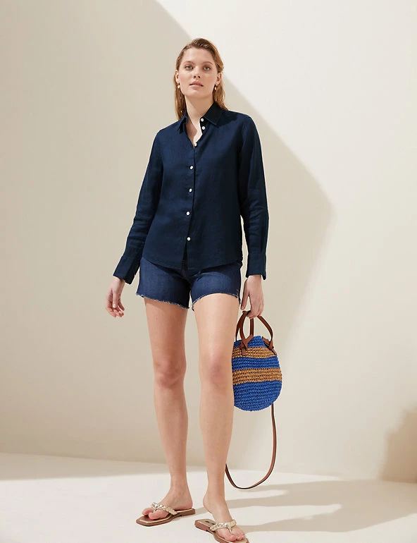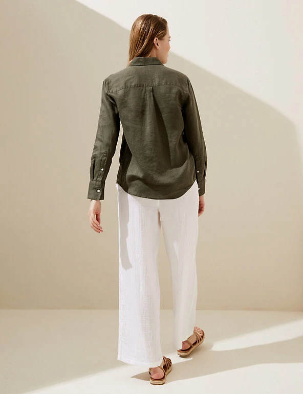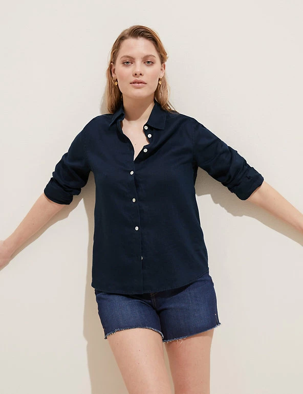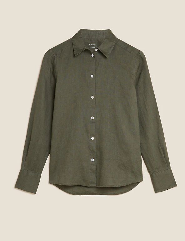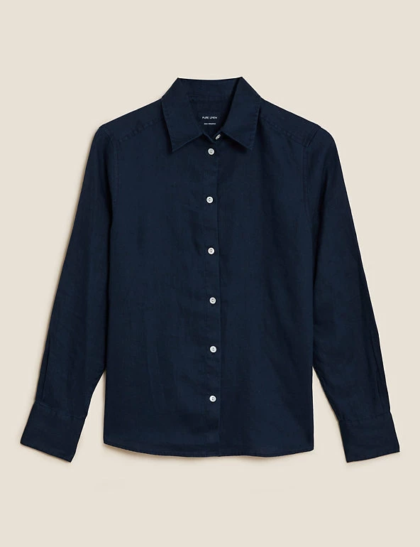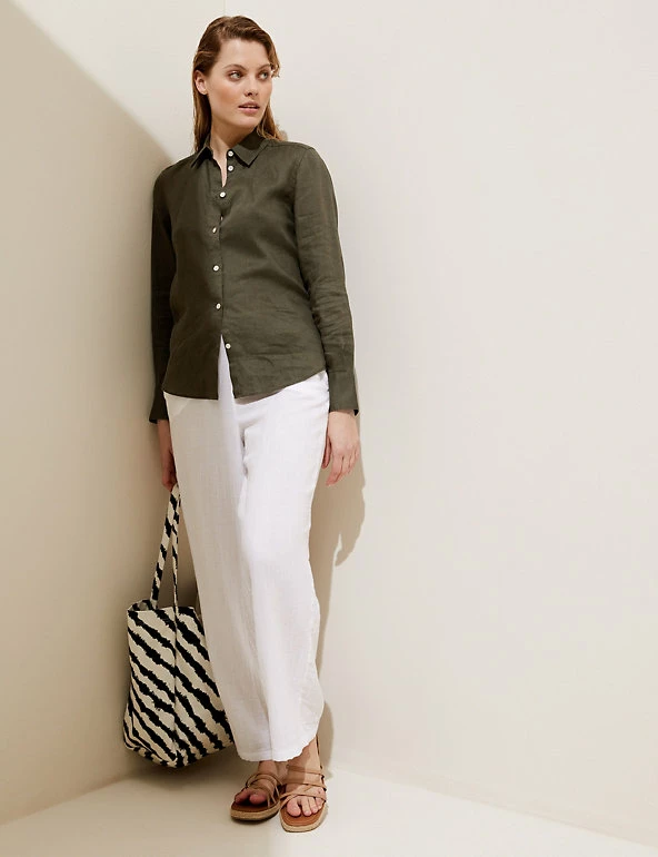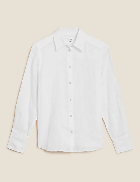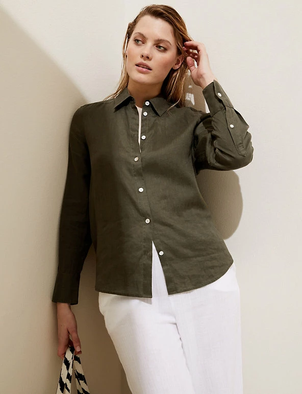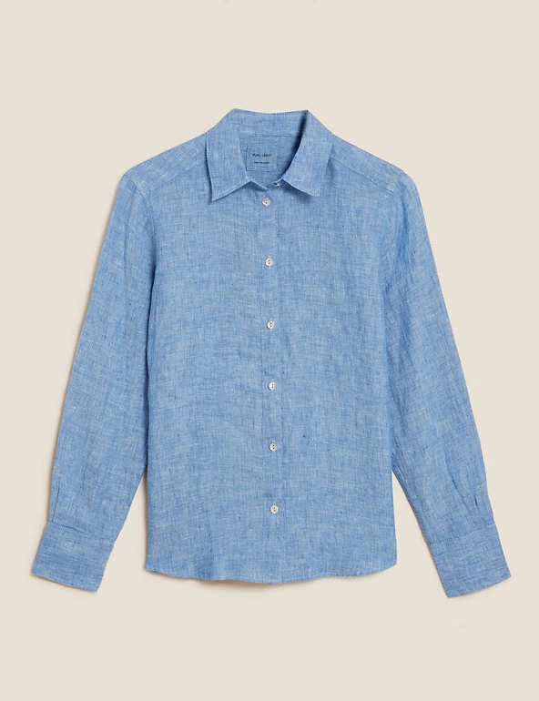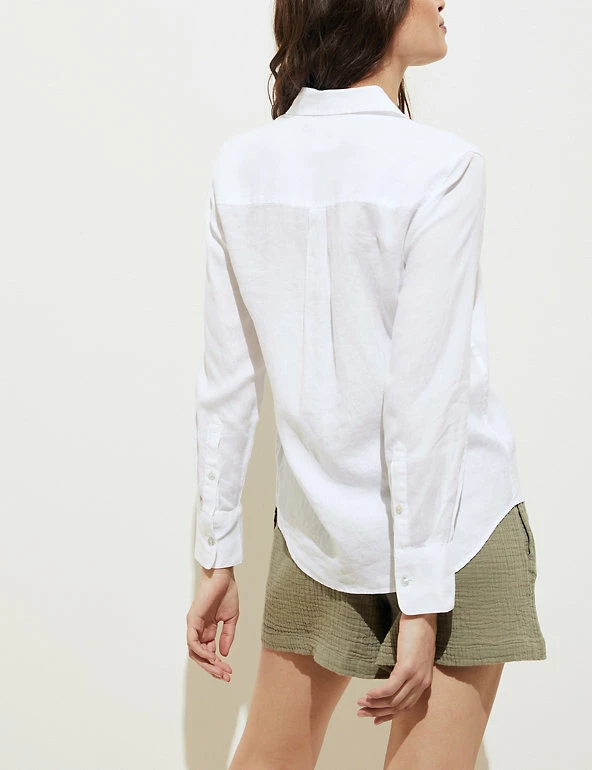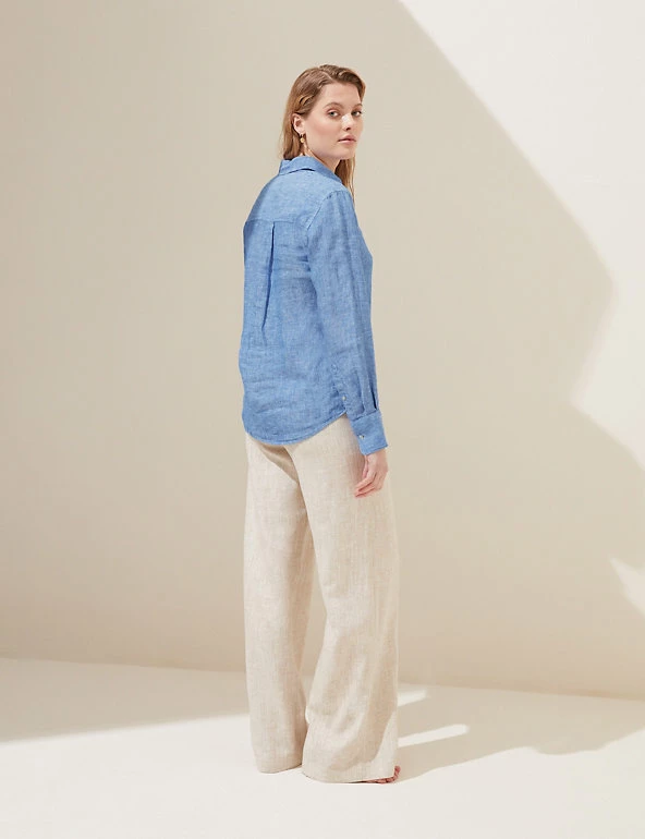 Pure linen fabric gives this shirt an easy-breezy feel. Classic regular fit, with a collar neckline and button-through front. Other tailored touches include the buttoned cuffs and back yoke.
