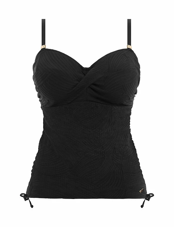 This elegant Fantasie tankini top will elevate your swimwear collection. It has lightly padded foam cups, underwiring and adjustable straps for your best fit and shape. Twist front detail creates a flattering sweetheart neckline and tummy control smooths and shapes your figure. The subtle all-over texture and tie fastenings on the sides provide the finishing touches.