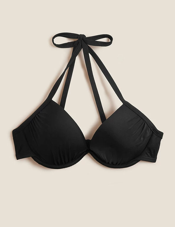 When the seaside calls, turn to this v-neck bikini top. It’s cut in a regular fit, with smart StayNew™ chlorine-resistant fabric to keep it looking newer for longer. Underwired, moulded cups keep you supported. Full lining and added stretch for comfort. Tie fastening for the perfect fit. M&S Collection: versatile styles in modern shapes with unique and playful details.