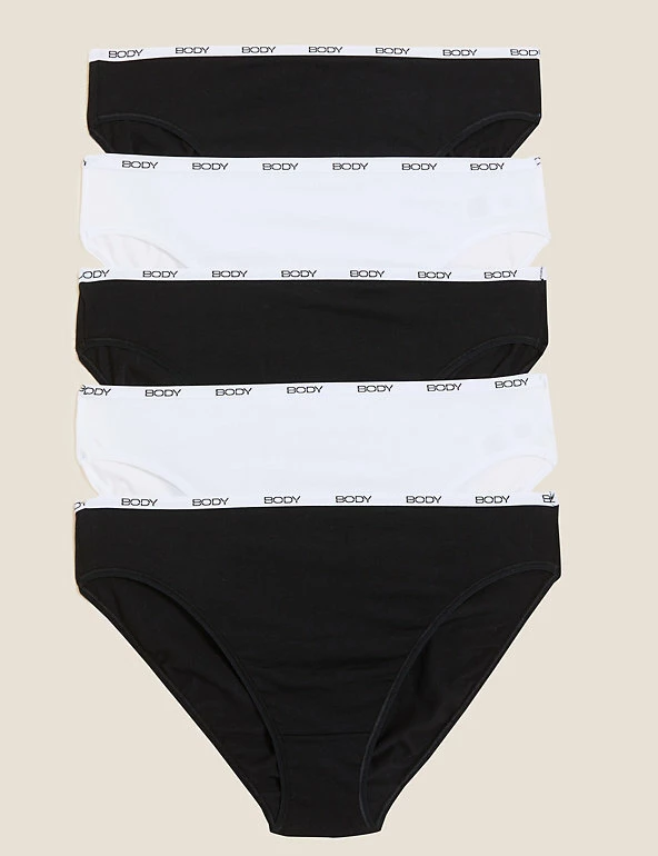 Choose this multipack of cotton-rich Body™ knickers for comfort every day of the week. High-leg style that sits just under the belly button to offer good bum coverage. Added stretch for extra comfort. Logos on the elasticated waistband for a sporty touch. Longer-lasting colour and finish, thanks to StayNew™ technology. We only ever use responsibly sourced cotton for our clothes.