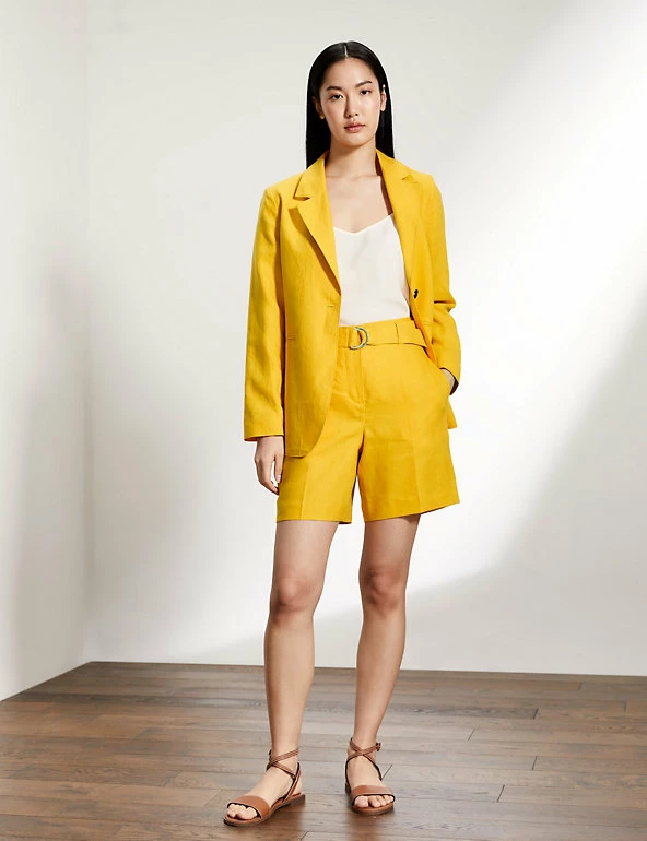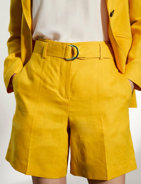 Pull together smart spring looks with these pure linen shorts from Jaeger. They’re cut from super breathable, pure linen fabric in a regular fit, and sit mid-rise for a flattering feel. A matching D-ring belt highlights the silhouette, plus there are two side pockets for your day-to-day essentials. Wear with a matching blazer and sandals for a stylish day-to-night outfit.