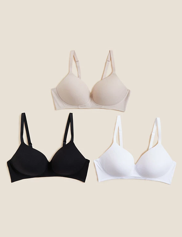 These t-shirt bras are made from cotton mix fabric for a breathable feel. Flattering plunge styles, with padded cups for a rounded shape. Non-wired for comfort. We only ever use responsibly sourced cotton for our clothes. M&S Collection: versatile styles in modern shapes with unique and playful details.