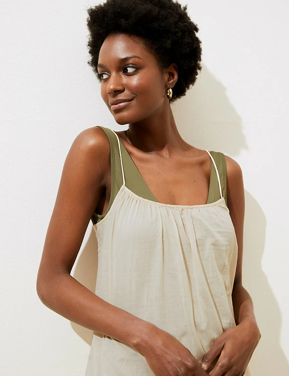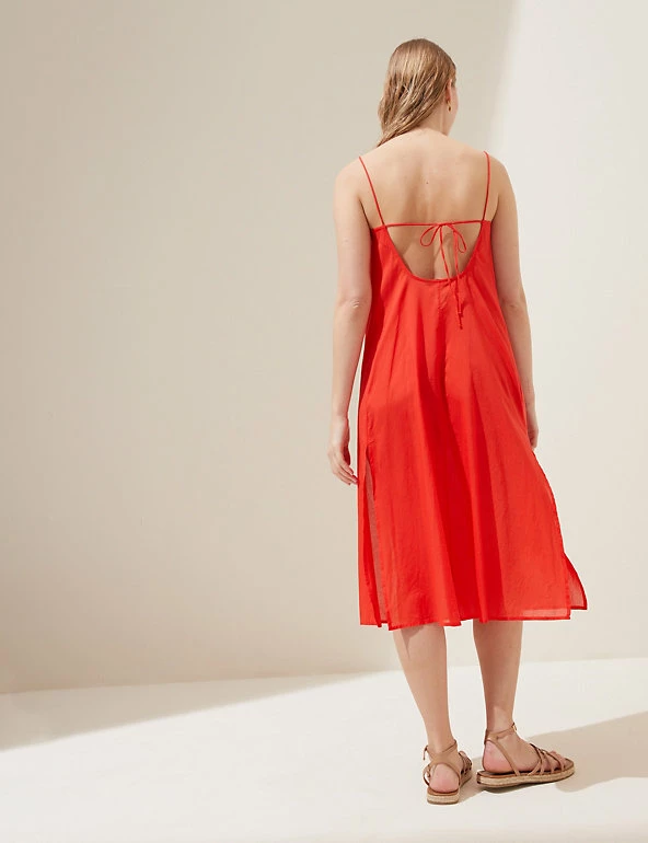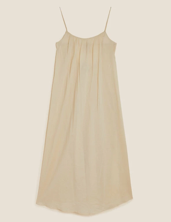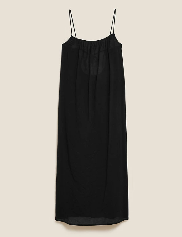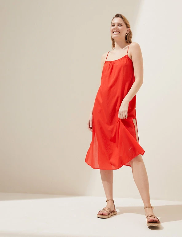 Crafted from pure cotton, this pared-back slip dress is perfect for warmer weather. It’s designed in a regular fit with a classic round neckline and spaghetti straps. It falls to an elegant midi length with a curved, floaty hem and features gentle gathering for a flattering silhouette.