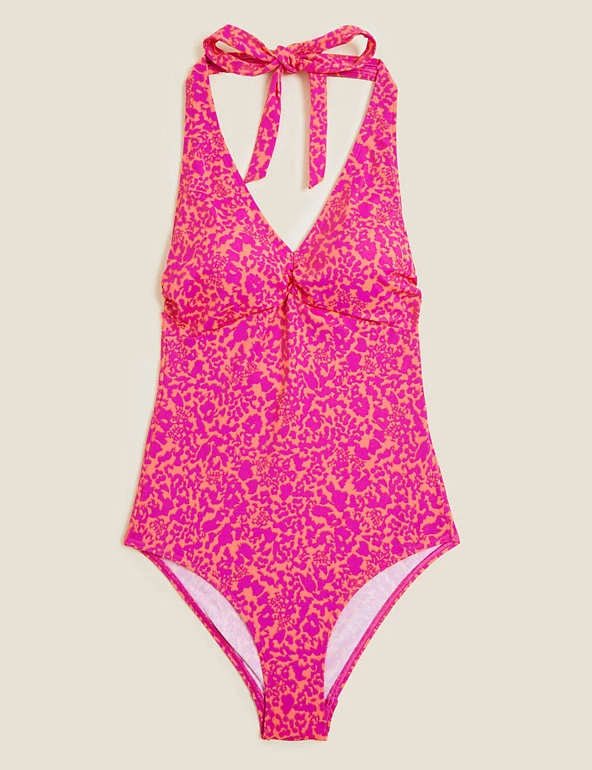 Make a splash in this bold animal print swimsuit. Regular fit, with a halterneck for flattering shaping. Chlorine-resistant StayNew™ technology keeps it looking new for longer.