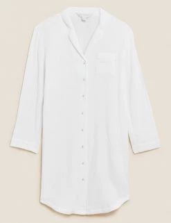 Cheap ⭐ M&S Collection Nightdresses Pure Cotton Muslin Rever Nightshirt ⭐