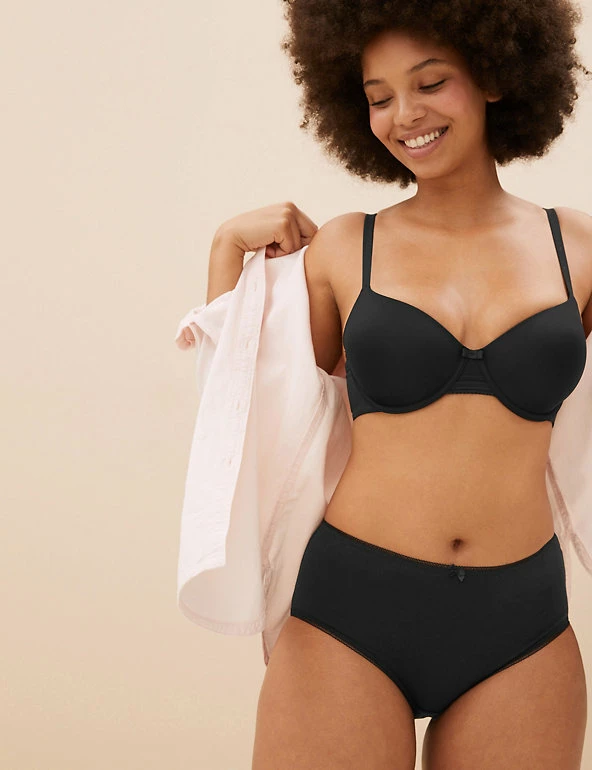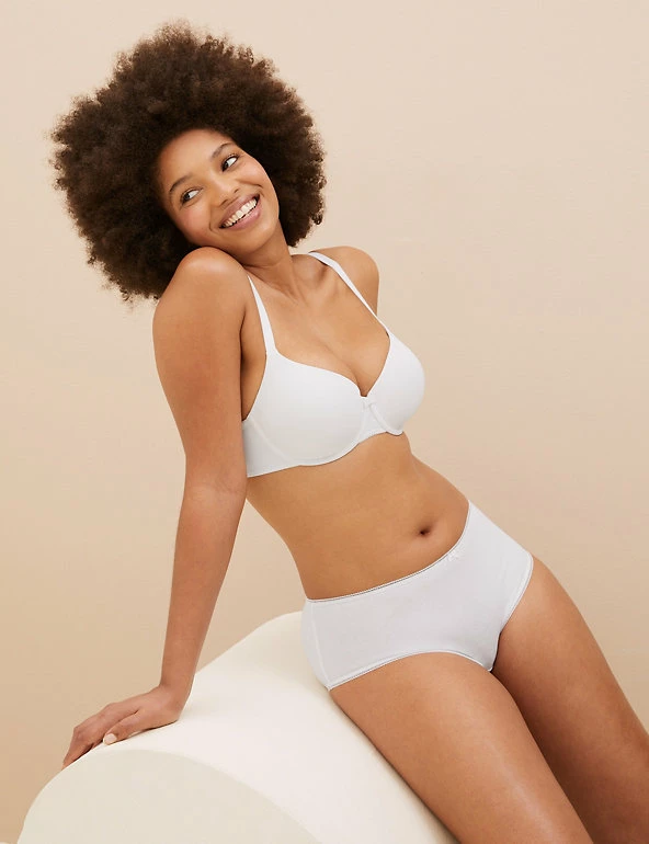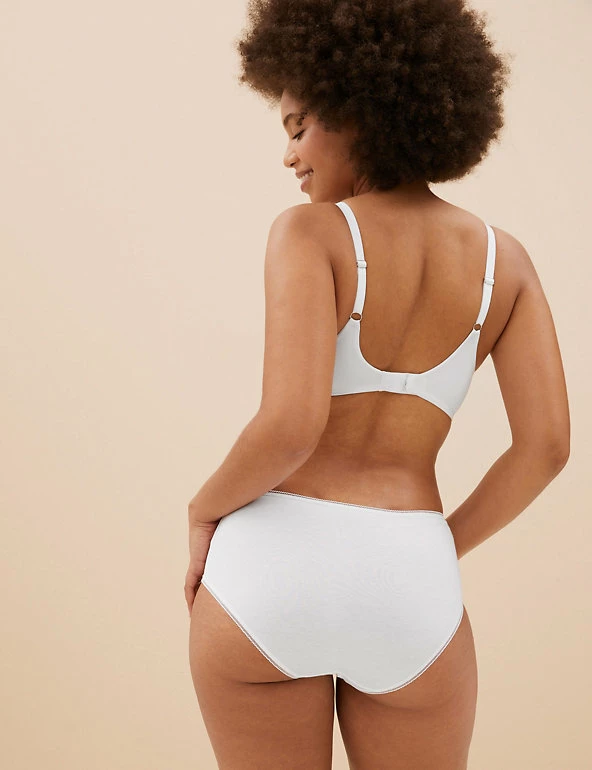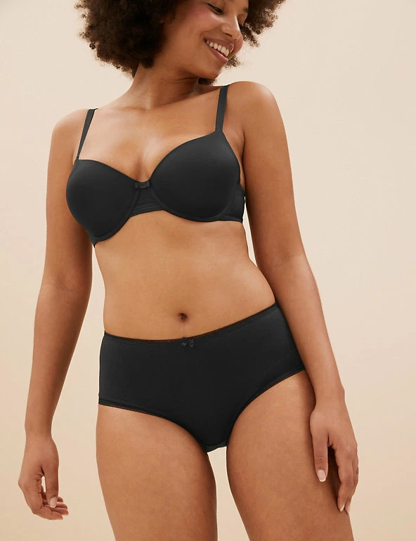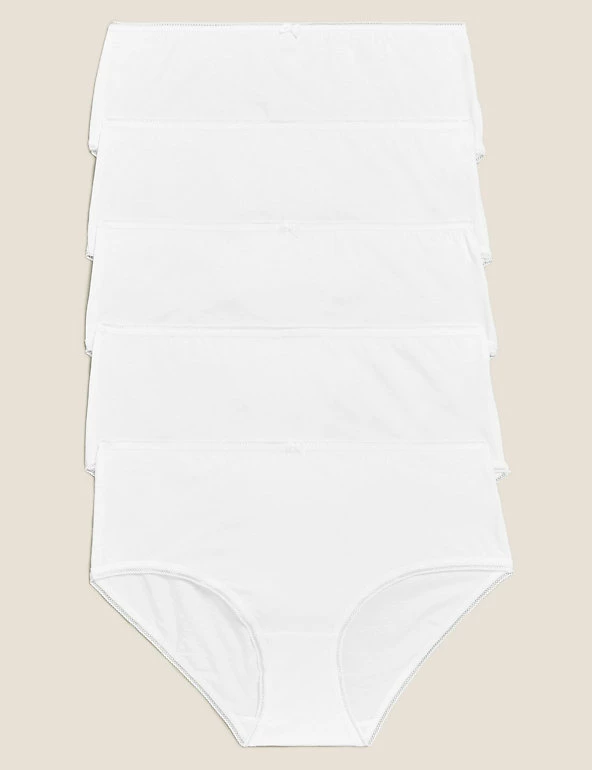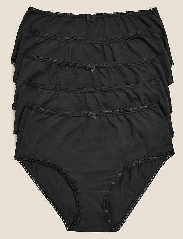 Fill out your collection of essential underwear with this 5-pack of plain midi knickers. Made from sustainably sourced cotton with added stretch in for a comfy, close fit. Centre bow details for a pretty look. Our StayNew™ technology will help them retain their colour and finish after every wash and wear.