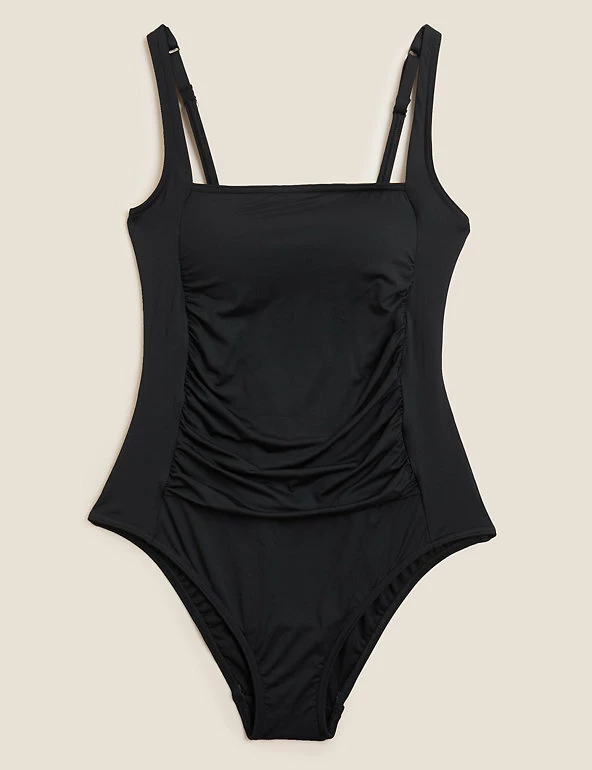 We’ve crafted this maternity swimsuit with ruched sides to flatter your bump. Regular fit, with adjustable straps and added stretch for comfort. A square neck offers a striking finish. StayNewβ’ technology gives chlorine resistance so it looks and feels new for longer.