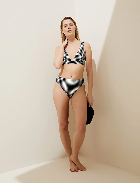 A playful gingham print gives these bikini bottoms a fun feel. We’ve designed them in a regular fit with added stretch for comfort and a chic high waist. The textured StayNew™ fabric is chlorine-resistant for longer-lasting newness.