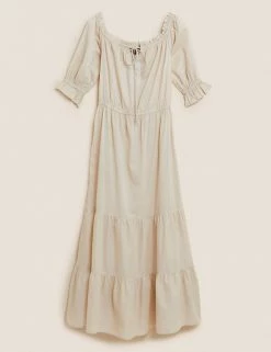 Coupon ⭐ M&S Collection 👗 Dresses Bardot Maxi Tiered Beach 👗 Dress ⭐
