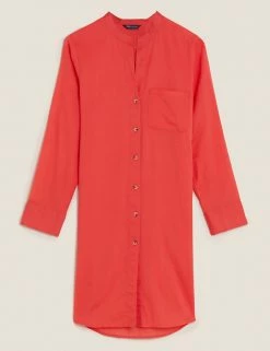 Buy ๐ M&S Collection ๐ Shirts & Blouses Pure Cotton Collarless Beach Cover Up ๐ Shirt ๐