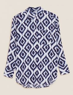 Deals ๐ M&S Collection ๐ Shirts & Blouses Pure Linen Printed Oversized ๐ Shirt โจ
