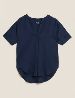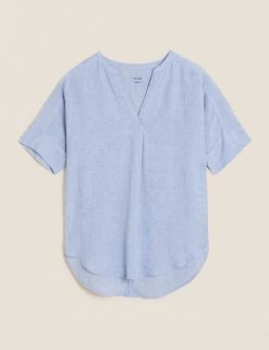 Cheap ๐งจ M&S Collection ๐ Shirts & Blouses Pure Linen Short Sleeve Popover Blouse ๐ฅ
