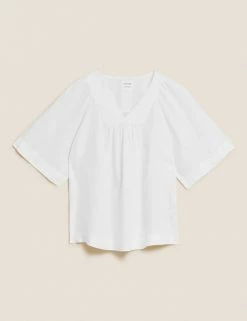 Hot Sale 🌟 M&S Collection 👚 Shirts & Blouses Pure Linen V-Neck Short Sleeve Blouse 💯