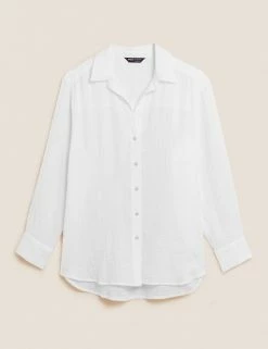Promo ❤️ M&S Collection 👕 Shirts & Blouses Linen Rich Checked Short Sleeve Blouse 👏