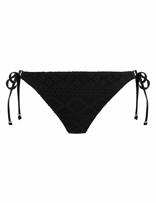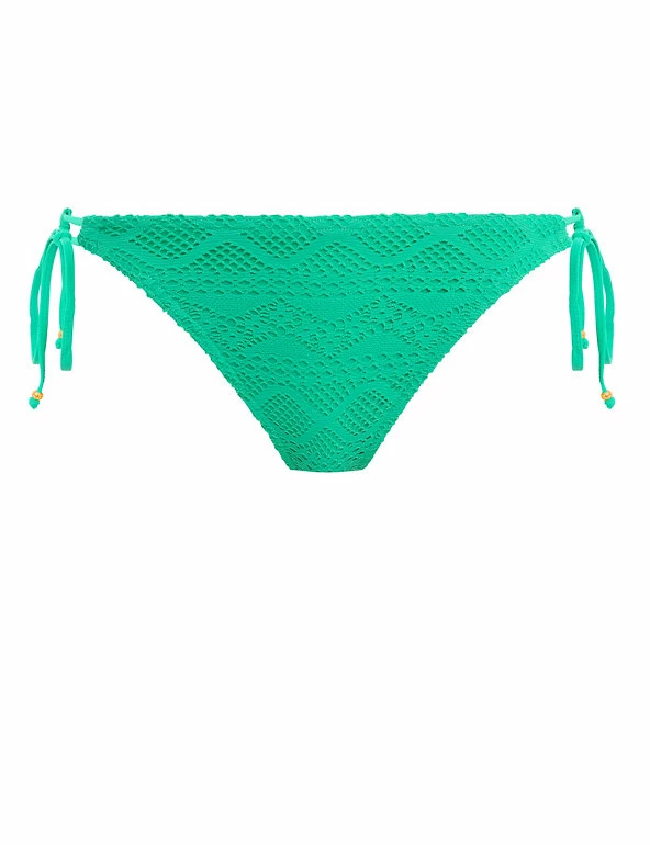 Bring a boho vibe to the beach with these textured crochet bikini bottoms from Freya. In a hipster style, they have a low-rise silhouette that provides medium bottom coverage. The adjustable side ties are detailed with embossed metal beads for an on-trend finish.