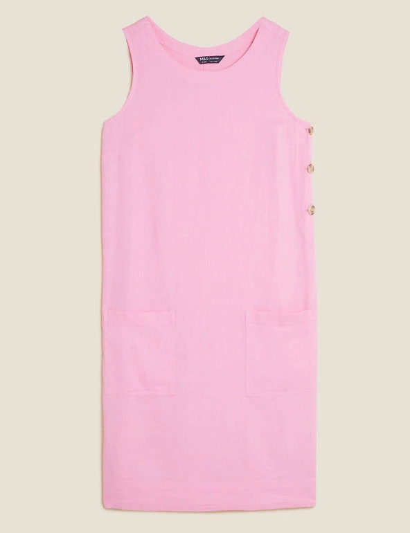 With its breezy linen-blend fabric, this knee-length dress is a welcome piece for warm days. It’s cut to a regular fit with an effortless shift silhouette and button detailing at the sides. The design is kept simple with a round neckline and front patch pockets. Made with sustainably sourced viscose.