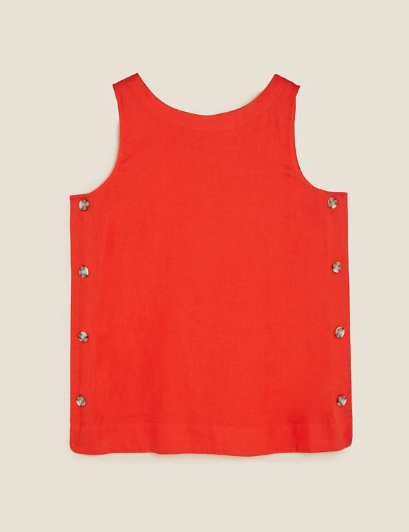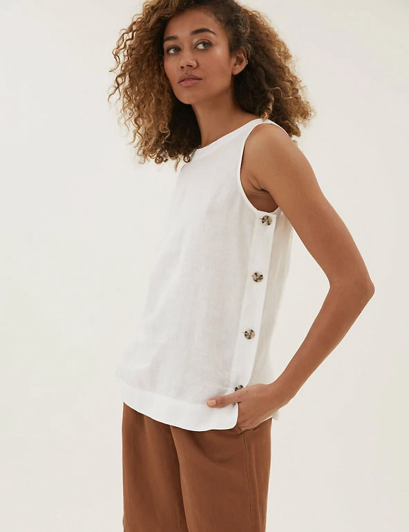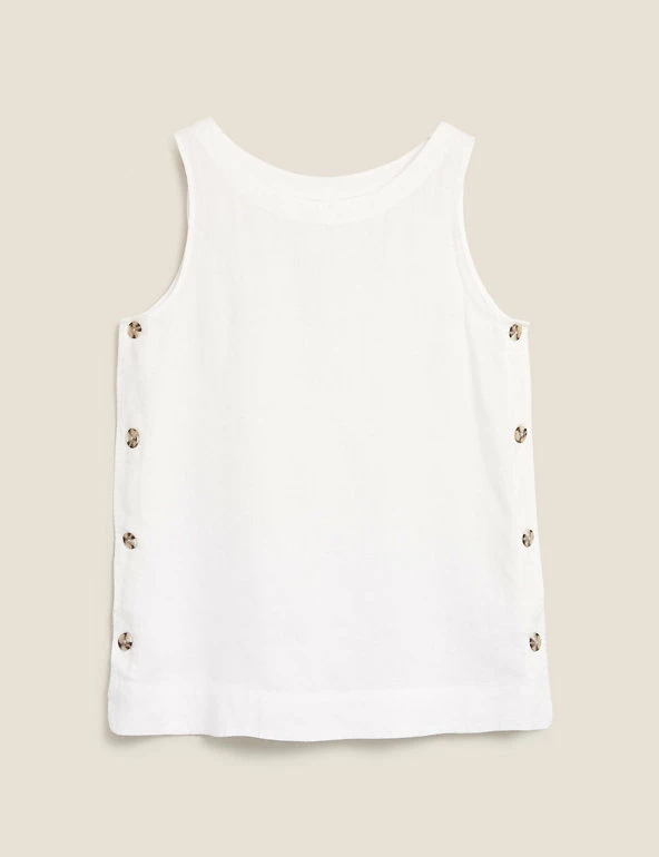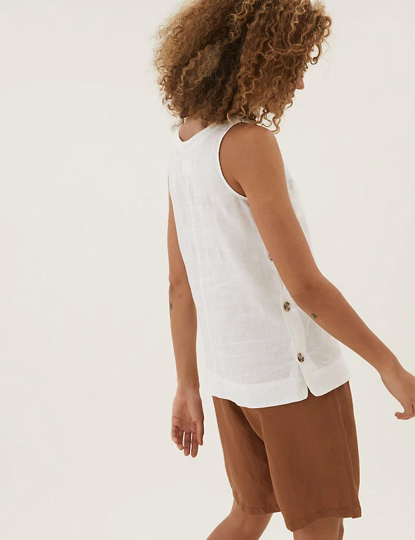 For sleek, easy style, look no further than this pure linen shell top. Sleeveless design, cut in a regular fit with a classic rounded neckline. Functional side buttons add a practical finish.